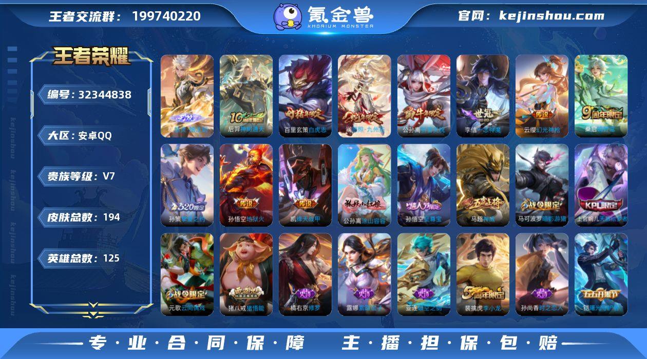 【933005】[17390616]V7 1无双 10传说 125英雄 194皮肤 可修改实名 男号 【稀有英雄】大司命,韩信(韩跳跳),夏洛特(夏师傅),艾琳,橘右京(橘子),娜可露露(鸟人),不知火舞,赵云,金蝉(唐僧),戈娅 【无双皮】器灵·螭龙剑 【传说皮】幻光神枪,神树通天,地狱火,一念神魔,绛天战甲(鸡嘴战神),挚爱之约 【珍宝阁皮】胡桃夹子,蔷薇恋人 【赛季/战令皮】噬灭天穹(s37),古海寻踪(s33),海盐诗旅(s30),擒涛扼浪(s31),探海日志(s32),剑破天穹(s35),天穹之誓(s36),混沌棋(s18),疑决卦(s19),醍醐杖(s20),原初探秘者(s21),万华元夜(s22),驱傩正仪(s24),千军破阵(s25),星空之诺,银河之约,夺宝奇兵,迷踪丽影,西部大镖客-猪八戒,暗影游猎(游乐娃子),单词大作战,狂想玩偶喵,潮玩骑士王,云间偶戏,沙漠行僧(s26),金庭之子(s27),大漠名商(s28),云中旅人(s29) 【史诗皮】破空之剑,星界战将,百相守梦-百里守约,涂山容容,紫霞仙子,黄金分割率,特工魅影,冰冠公主,白蛇,猫狗日记-孙策,时之恋人-孙尚香,乱世虎臣,修罗,女仆咖啡,摇滚巨星,水果甜心,绅士熊喵,星夜王子,功夫厨神,暗隐猎兽者,鬼剑武藏,心灵战警,天秀·启明,地狱岩魂,纤云弄巧,繁星吟游(呼啦呼啦),逐浪之夏,水晶猎龙者,曙光守护者,箭羽风息,金属风...