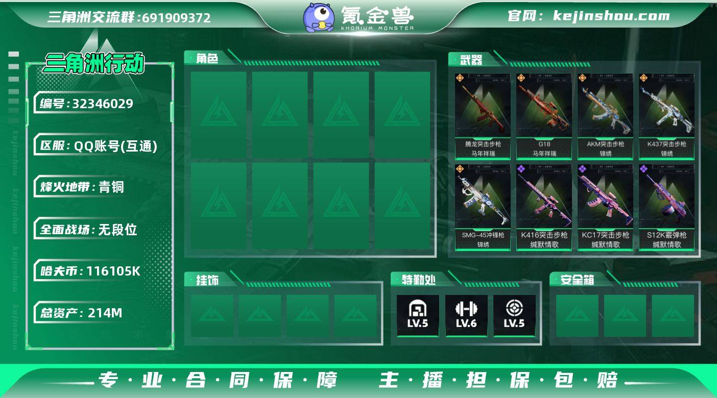 【PTSJZ3064】总资产(M):214M/哈夫币(K):116105K/哈夫币(K):116105K/传说枪皮数:11/全面战场等级:1_段位:无段位/烽火地带等级:60_段位:青铜/近战-黑鹰/AKM突击步枪-锦绣/AUG突击步枪-悠然茶歇/SCAR-H战斗步枪-荼蘼/腾龙突击步枪-马年祥瑞/K437突击步枪-锦绣/MK47突击步枪-悠然茶歇/UZI冲锋枪-悠然茶歇/SMG-45冲锋枪-锦绣/SR-3M紧凑突击步枪-荼蘼/PKM通用机枪-荼蘼/G18-马年祥瑞/K416突击步枪-阿萨拉特攻/K416突击步枪-缄默情歌/KC17突击步枪-缄默情歌/MP7冲锋枪-六套之力/S12K霰弹枪-缄默情歌/SMG-45冲锋枪-行动开启/SMG-45冲锋枪-幻影结构/QSZ92G-一帆风顺/K416突击步枪-几何迷彩/K416突击步枪-高雅黑/M7战斗步枪-黑巧甜心/SG552突击步枪-狂欢/SCAR-H战斗步枪-数码迷彩/MP5冲锋枪-海色/P90冲锋枪-黑巧甜心/Vector冲锋枪-几何迷彩/UZI冲锋枪-海色/UZI冲锋枪-狂欢/M1014霰弹枪-高雅黑/M249轻机枪-黄蜂/QJB201轻机枪-典雅/SR-25射手步枪-黄蜂/挂饰-锦绣/挂饰-汤圆/挂饰-北非蛋/挂饰-饺子/挂饰-荼蘼/挂饰-马到成功/挂饰-悠然茶歇