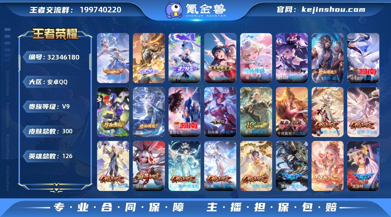 安卓Q-V9-最强王者段位-128英雄-399皮肤-4典藏皮肤-1无双-1珍品传说-24传说-125史诗 【英雄全皮】:刘禅全皮,孙权全皮,李信全皮,鲁班大师全皮,蒙恬全皮,金蝉全皮,戈娅全皮,空空儿全皮,影全皮 【荣耀典藏】:小乔天鹅之梦,孙尚香杀手不太冷,李白鸣剑曳影,虞姬神鉴启示录 【无双皮肤】:小乔时之魔女 【珍品传说】:鲁班七号江户川柯南 【传说皮肤】:后羿神树通天,干将莫邪千山共赴,虞姬愿照岁时盈,云缨幻光神枪,桑启鸣野蒿,孙尚香乘龙问璇玑,虞姬无限倾心,李信山海炽霜斩,马可波罗深海之息,露娜启示之音,女娲补天,鲁班七号寅虎瑞焰,李元芳飞鸢探春,铠绛天战甲,虞姬启明星使,李信一念神魔,张良黄金白羊座,干将莫邪久胜战神,虞姬云霓雀翎,花木兰冠军飞将,后羿黄金射手座,诸葛亮武陵仙君,孙尚香末日机甲,狄仁杰超时空战士 【限定皮肤】:蒙犽顽岩魄,蔡文姬夏日便利店,大乔绒语心约,虞姬夏日便利店,姜子牙天穹之誓,杨戬破阵退雄兵,李白谪仙醉月,狄仁杰阴阳师,廉颇寅虎御盾,赵云皇家上将,孙尚香蔷薇恋人,鲁班七号寅虎瑞焰,钟无艳超时空战士,孙膑寅虎展翼,扁鹊奇幻香踪,白起夜都怪侠,芈月幻夜卜梦,元歌无心,夏侯惇匿光决锋者,甄姬落雪兰心,马可波罗暗影游猎,马可波罗深海之息,狄仁杰魔术师,达摩沙漠行僧,项羽海滩派对,露娜启示之音,王昭君午后时光,兰陵王金庭之子,李元芳银河之约,李元芳匿光侦查者,李元芳云中旅人,虞姬启明星使,虞姬无限倾心,钟馗驱傩正仪,杨玉环遇见飞天,杨戬潮玩骑兵,女娲朔望之晖,女娲补天,干将莫邪胡桃夹子,鬼谷子五谷丰年,诸葛亮武陵仙君,黄忠火炮绅士,苏烈千军破阵,梦奇顽趣,公孙离玉兔公主,沈梦溪大漠名商,明世隐吟游魔法,裴擒虎擒涛扼浪,狂铁电玩高手,米莱狄胡桃异想国,瑶山海碧波行,云中君纤云弄巧,云...