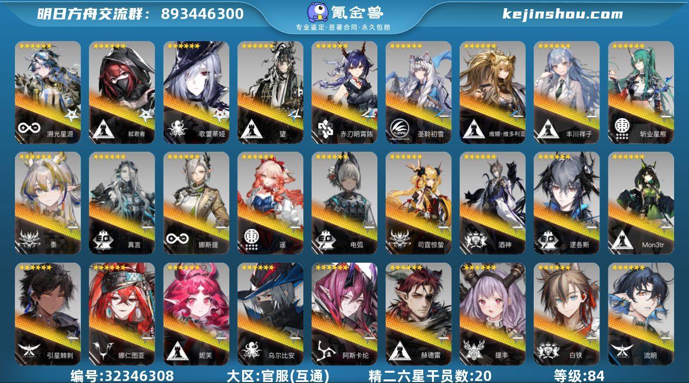 干员足够抄网上的九成作业,里面还有五六十抽,资源也多,随便专三三模,做个小号很舒服,只不过我不想玩了,打算卖了