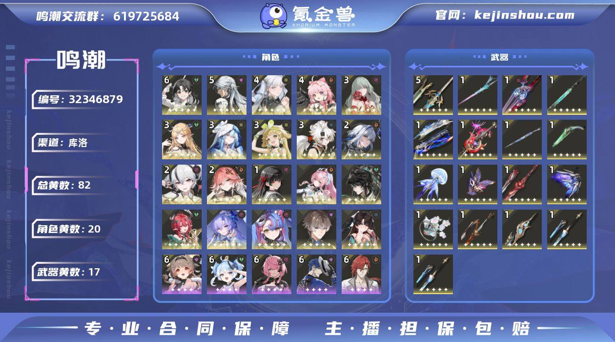 只要是有的角色大多配队齐全,三号位有3+1守岸人3链维神(有精5奇幻变奏),练度均有保障,评分至少S,大多SSS,到手免养成 3+1卡提(配队01夏空11千咲) 3+1弗洛洛(配队01坎特蕾拉01洛可可) 4+1今汐(配队01折枝) 2+1嘉贝(配队01仇远) 2+1椿(散华有练度) 0+1小爱(准备走聚爆流等队友中) 2+1长离单挂