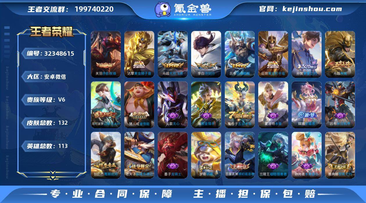 【932803】3金标!金标马超 金标达摩 金标孙策 对抗路42段 安卓WX-V0-永恒钻石V段位-113英雄-132皮肤-1典藏皮肤-6传说-40限定-10印记 【荣耀典藏】:关羽赤影疾锋 【传说皮肤】:吕布怒海麟威,李白诗剑行,马超无双飞将,孙策挚爱之约,达摩黄金狮子座,后羿黄金射手座 【限定皮肤】:狄仁杰阴阳师,赵云皇家上将,墨子神迹守卫,庄周高山流水,白起夜都怪侠,芈月幻夜卜梦,元歌无心,马可波罗山海玄木吟,狄仁杰魔术师,狄仁杰万华元夜,达摩沙漠行僧,项羽海滩派对,老夫子醍醐杖,老夫子航海奇遇记,程咬金演武夺筹,兰陵王金庭之子,后羿圣弓游侠,李元芳云中旅人,钟馗驱傩正仪,干将莫邪胡桃夹子,干将莫邪真爱魔法,雅典娜黎明之约,鬼谷子原初探秘者,鬼谷子五谷丰年,黄忠火炮绅士,苏烈千军破阵,百里玄策原初追逐者,梦奇顽趣,沈梦溪大漠名商,明世隐吟游魔法,裴擒虎擒涛扼浪,孙策挚爱之约,猪八戒猪悟能,嫦娥拒霜思,鲁班大师探海日志,桑启海盐诗旅,张良古海寻踪,鬼谷子天穹祈灯 【年限皮肤】:马可波罗山海玄木吟 【赛季限定】:老夫子醍醐杖,鬼谷子原初探秘者,狄仁杰万华元夜,程咬金演武夺筹,钟馗驱傩正仪,苏烈千军破阵,达摩沙漠行僧,兰陵王金...