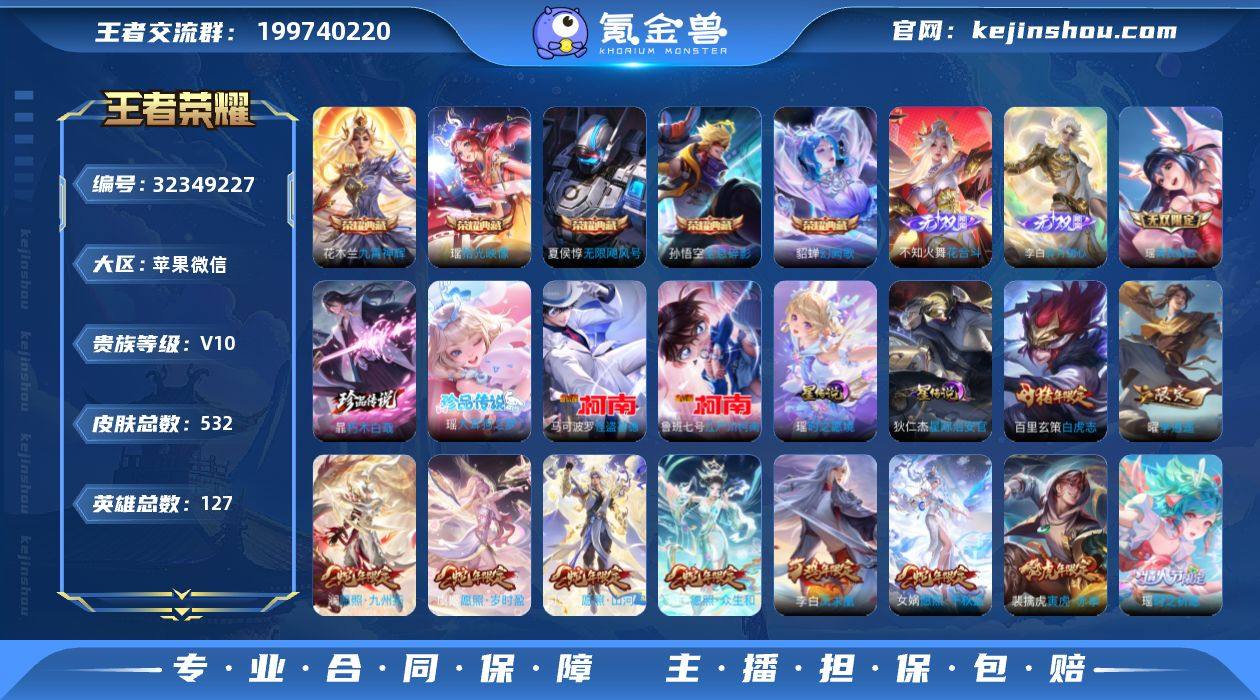 【aswz1693】瑶全皮,国标曜,苹果WX-V10-至尊星耀I段位-127英雄-532皮肤-5典藏皮肤-1典藏英雄-3无双-4珍品传说-64传说-193史诗 【英雄全皮】:瑶全皮 【荣耀典藏】:武则天英雄,孙悟空全息碎影,夏侯惇无限飓风号,花木兰九霄神辉,貂蝉幻阙歌,瑶拾光映像 【无双皮肤】:不知火舞花合斗,李白碎月剑心,瑶真我赫兹 【珍品传说】:暃朽木白哉,瑶大耳狗之梦,鲁班七号江户川柯南,马可波罗怪盗基德 【传说皮肤】:司空震愿照山河定,女娲愿照千秋盛,妲己愿照众生和,澜愿照九州拓,蔡文姬愿照福禄聚,虞姬愿照岁时盈,裴擒虎祥瑞亨通,嬴政玄雷天君,王昭君映山客,桑启鸣野蒿,夏侯惇霜北刀,墨子黄金天蝎座,澜逐花归海,艾琳觅芳踪,露娜霜月吟,云缨鹤归松栖,公孙离记忆之芯,孙悟空齐天大圣,小乔山海琳琅生,曜山海苍雷引,李信山海炽霜斩,吕布怒海麟威,李白诗剑行,娜可露露前尘镜,马超无双飞将,大乔挚爱花嫁,孙策挚爱之约,露娜启示之音,蔡文姬花朝如约,女娲补天,孙策末日机甲,瑶时之祈愿,裴擒虎寅虎赤拳,孙尚香异界灵契,赵云淬星耀世,西施游龙清影,曜李逍遥 ,兰陵王默契交锋,诸葛亮时雨天司,铠绛天战甲,镜炽阳神光,虞姬启明星使,曜云鹰飞将...