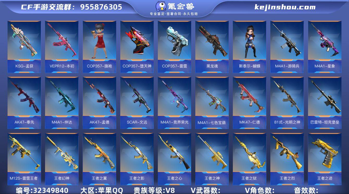 1框2至尊 7cop 18王者武器 具体详情见图【v336-vip10-等级162-显血戒指】 龙腾81瑜+无双奉先+女团王戮+星象+过载仲达+女团王魄+铩魔常胜+过载孟德+仁德+王幻+女团王怒+定军 极品热门贵10库存 喜欢可谈!!! 【至尊】:心至尊 怒至尊 【王者武器】:王者幻神,王者之蝶,王者之戮,王者之影,王者之心,王者之怒,王者之神,王者之烈,王者之狱,王者之魄-冠军珍藏,王者之兽,王者之尊,王者之电,王者之迹,王者之隐,王者之魂 【三国武器】:AK47-奉先,AK47-常胜,AK47-策,AK47-孟德,M4A1-星象,M4A1-卧龙觉醒,M4A1-仲达,M4A1-武圣,M4A1-威侯,巴雷特-定军,AWM-妙才,TAC-慈,MK47-仁德,81式-瑜,CZS2-仲康,SCAR-文远,加特林-炼狱,蟒蛇-奉先,消音毛瑟-常胜,CZ75-策,沙鹰-孟德,双管猎枪-威侯,柯尔特-仲达,MK23-瑜,USP-仁德,沙鹰-定军,蟒蛇-妙才,COP357-星象,气手枪-炼狱,左轮-卧龙觉醒 【热门武器】:M4A1-七色宝葫,M4A1-雷神,M4A1-赛博雷神,M4A1-太白诗仙,M4A1-游骑兵,M4A1-竞界荣光,AK47-游骑兵,MK47-机械纪元,AUG-机械纪元,MK5-机械纪元,AA12-雷神,SCARLight-白虎,HK417-朱雀,MK47-机械纪元,SKS-美杜莎,AN94-超新星,QBZ03-天罚,KSG-钟馗觉醒,QBZ97-浩瀚征途,M14EBR-葫芦山庄,QBZ191-封神榜,XM8-湮灭,AK47-谜城烟火,M16-恶魔,AK47-雅韵青花,M14EBR-拂影,QBZ03-玉面羞花,SCAR-印刷术觉醒,AK47-破空冰刃,M4A1-千变,MK47-鼓龙,AK47-木兰,9A91-天神,SCAR-探星者,M4A1-夏清觉醒,AK47-春雅觉醒,M4A1-运输船,AK47-华夏传说,M4A1-心动次元觉醒,AK47-波塞冬,81式-光明之神,M4A1-海骑士,AK47-血武士,AK47-雷麒麟,AK47-心动次元觉醒,M4A1-机械迷城,AK47-燎天净火,AK47-幸运日,HK416-混世行者,M4A1-雷霆,AK47-混世魔王,AK47-沙漠郡主-...