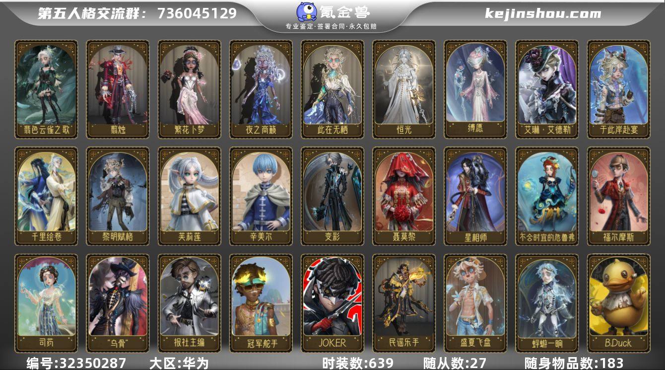 全归宿高等级+典藏家具+虚妄家具 P5/B.Duck/葬送的芙莉莲/福尔摩斯/有兽焉/非人哉/深渊IX/骑士/弓箭手/斗牛士全图鉴 真理之下/孤狼 锁芯 黯 号上美皮多资源多头像框头像多 急出可谈价