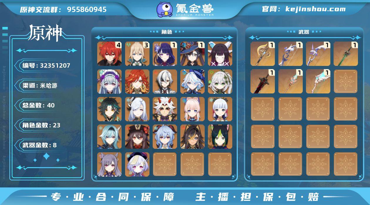 【YSYT1037】59级/40黄/女主/23个五星角色/8个五星武器/玛薇卡/一命雷电将军/纳西妲/荒泷一斗/魈/三命琴/优菈/甘雨/神里绫华/胡桃/四命迪卢克/一命莫娜/申鹤/七七/珊瑚宫心海/芙宁娜/迪希雅/埃洛伊/刻晴/阿蕾奇诺/梦见月瑞希/提纳里/哥伦比娅/阿莫斯之弓/天空之翼/天空之脊/裁断/磐岩结绿/狼的末路/若水