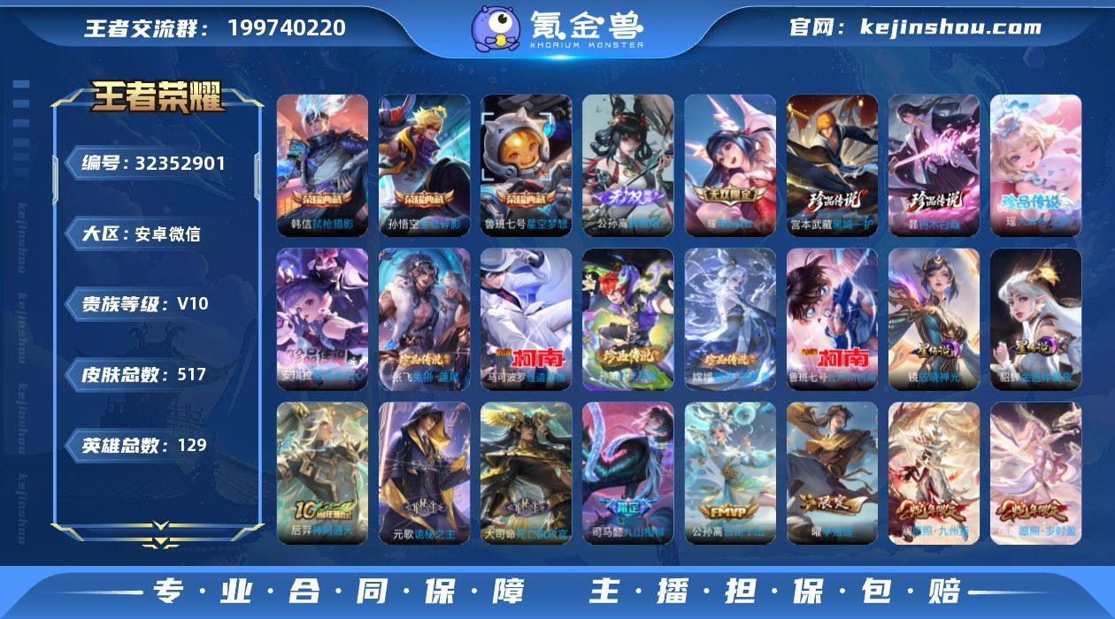 V10!5万流光分! 满蛇年!安卓WX-V10-最强王者段位-129英雄-517皮肤-3典藏皮肤-1典藏英雄-2无双-9珍品传说-63传说-163史诗 【英雄全皮】:马可波罗全皮,刘邦全皮,孙权全皮,苍全皮,苏烈全皮,亚连全皮,大司命全皮,敖隐全皮,鲁班大师全皮,金蝉全皮,暃全皮,莱西奥全皮,戈娅全皮,空空儿全皮,影全皮,少司缘全皮 【荣耀典藏】:武则天英雄,孙悟空全息碎影,鲁班七号星空梦想,韩信弑枪猎影 【无双皮肤】:公孙离离恨烟,瑶真我赫兹 【珍品传说】:宫本武藏黑崎一护,暃朽木白哉,安琪拉酷洛米之心,瑶大耳狗之梦,张飞兔狲蓬尾,嫦娥器灵落星盏,孙策时之奇旅,鲁班七号江户川柯南,马可波罗怪盗基德 【传说皮肤】:后羿神树通天,元歌诡秘之主,大司命死亡执政官,司马懿九山相柳,公孙离云诺千山,西施续相思,杨玉环星之鸣奏,司空震愿照山河定,女娲愿照千秋盛,妲己愿照众生和,澜愿照九州拓,蔡文姬愿照福禄聚,虞姬愿照岁时盈,云缨幻光神枪,裴擒虎祥瑞亨通,嬴政玄雷天君,王昭君映山客,桑启鸣野蒿,庄周牧神诗旅,夏侯惇霜北刀,铠冥王哈迪斯,亚连落雪白狼,艾琳觅芳踪,甄姬至美化雀舞,鲁班七号时之奇旅,兰陵王影龙天霄,吕布遇见神鼓,马可波罗妄想...