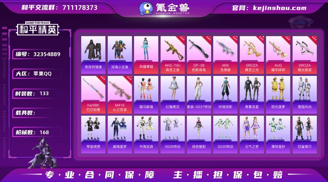 【1443】苹果 手Q-6粉装-5特效枪-1载具-2粉色飞行器-25553热力值-2王牌印记-54套装-89枪皮 【热门品类】:角色-军刀雅典娜 【粉色载具】:合金龙骨(绿) 【粉色套装】:粉装-冷魅冰骑,粉装-赤焰黑爵,粉装-紫电风暴,角色-复仇流浪者,粉装-绒雪飘舞,粉装-霁雪冰心 【粉色枪皮等级】:M416-暖熊萌萌(四级),AUG-暖羊咩咩(五级),Kar98K-巳巳如意(五级),DP-28-豹影疾电(五级),平底锅-喜羊羊与灰太狼(一级) 【粉色枪皮】:M416-暖熊萌萌,AUG-暖羊咩咩,Kar98K-巳巳如意,DP-28-豹影疾电,平底锅-喜羊羊与灰太狼 【粉色飞行器】:冷魅冰骑飞行器,飞天猪飞行器 【粉色降落伞】:伏魔团降落伞,心之恋语降落伞,冷魅冰骑降落伞,环太平洋降落伞,第五大道降落伞,无垠阁降落伞 【稀有套装】:套装-巳巳如意,套装-燕燕于飞,套装-鱼渊荷华,套装-蓝海鲸歌,套装-朱霞炽焰,套装-凌霄紫焰,套装-擎苍青焰 【稀有枪皮】:AKM-四圣焕新,AKM-玉龙,M16A4-机械英豪,SCAR-L-夜灯,SCAR-L-炫彩节奏,SCAR-L-红色方程式,M416-红色方程式,M416-蓝色火焰,GROZA-恐龙拽拽,GROZA-生命誓言,AUG-甜蜜菠萝,QBZ-原初圣火,M762-牛气冲天,G36C-冷魅冰骑,AC-VAL-天降萌叽,ARX-凌霄紫焰,UMP45-生命誓言,UMP45-蓝色火焰,汤姆逊-环太平洋,野牛-机械英豪,JS9-凌霄紫焰,P90-巳巳如意,AWM-不夜海上花,SKS-心之恋语,Mini14-原初圣火,Mini14-炫彩节奏,Win94-机械英豪,S686-巳巳如意,S12K-破晓战魂,S12K-夜灯,S12K-幻世战舞者,S12K-机械英豪,M249-冷魅冰骑,M249-破晓战魂,DP-28-原初圣火,MG3-幻世战舞者,MG-36-凌霄紫焰,P92-凌霄紫焰,P18C-原初圣火,R45-幻彩电音,短管霰弹-竹节火铳,平底锅-凌霄紫焰,平底锅-无垠阁,破片手榴弹-巳巳如意 【其他套装】:套装-SS11特训,套装-SS12特训,套装-SS13特训...