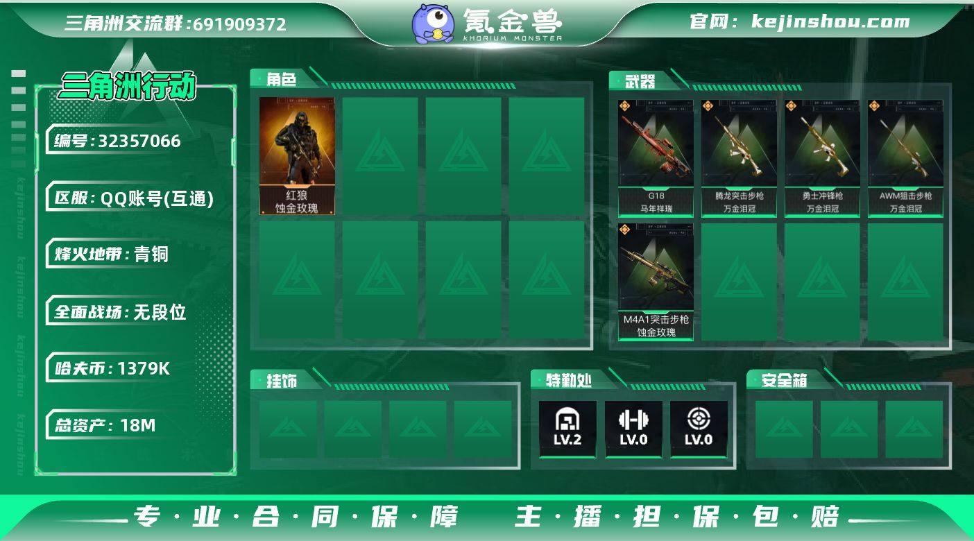 【4739】总资产(M):18M/哈夫币(K):1379K/哈夫币(K):1379K/传说枪皮数:5/全面战场等级:2_段位:无段位/烽火地带等级:14_段位:青铜/红狼-蚀金玫瑰/近战-黑鹰/M4A1突击步枪-蚀金玫瑰/腾龙突击步枪-万金泪冠/勇士冲锋枪-万金泪冠/AWM狙击步枪-万金泪冠/G18-马年祥瑞/Vector冲锋枪-先锋/QJB201轻机枪-哈夫克卫队/G18-星链科技/G18-哈夫克航天/QBZ95-1突击步枪-高雅黑/M7战斗步枪-红色涂装/SG552突击步枪-狂欢/PTR-32突击步枪-黄蜂/QJB201轻机枪-典雅/挂饰-蚀金玫瑰/挂饰-汤圆/挂饰-北非蛋/挂饰-饺子/挂饰-万金泪冠/挂饰-马到成功