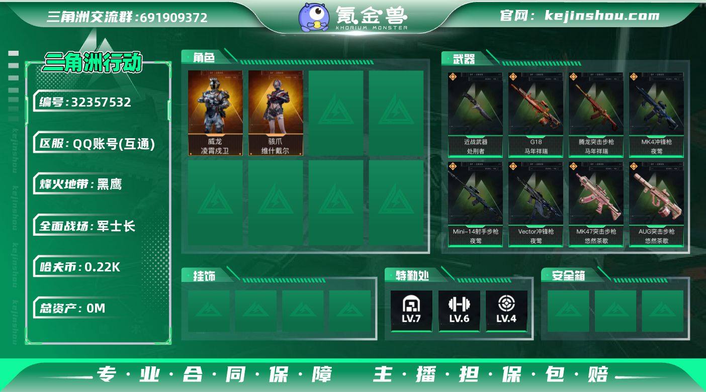 XXSJZ2021【凌霄戍卫 处刑者】三端互通-总价值36.5M-哈夫币5k-烽火地带等级60-烽火地带【干员皮肤】威龙-凌霄戍卫 露娜-金牌射手 乌鲁鲁-荒原猎手【近战武器】黑鹰 处刑者【枪皮】腾龙突击步枪-古铜 PTR-32突击步枪-黑潮 M4A1突击步枪-粉色涂装 M4A1突击步枪-高雅黑 M4A1突击步枪-海色 M4A1突击步枪-繁盛 AKM突击步枪-前沿科技 AKM突击步枪-肃杀 QBZ95-1突击步枪-高雅黑 QBZ95-1突击步枪-三角洲力量 QBZ95-1突击步枪-海色 QBZ95-1突击步枪-2026 QBZ95-1突击步枪-凌霄戍卫 AKS-74U突击步枪-磐石 AKS-74U突击步枪-冰天雪地 ASh-12战斗步枪-繁盛 K416突击步枪-几何迷彩 K416突击步枪-高雅黑 K416突击步枪-重击 K416突击步枪-一帆风顺 K416突击步枪-阿萨拉特攻 K416突击步枪-冬日风情 K416突击步枪-腊梅 K416突击步枪-行动记录 M16A4突击步枪-高雅黑 AUG突击步枪-浅蓝涂装 M7战斗步枪-红色涂装 M7战斗步枪-黑巧甜心 M7战斗步枪-重击 M7战斗步枪-百步穿杨 SG552突击步枪-浅蓝涂装 SG552突击步枪-海浪 SG552突击步枪-狂欢 SG552突击步枪-2026 SG552突击步枪-马年新春 SG552突击步枪-贴花艺术 SG552突击步枪-运动员 AK-12突击步枪-变色龙 AK-12突击步枪-马年新春 SCAR-H战斗步枪-红色涂装 SCAR-H战斗步枪-数码迷彩 SCAR-H战斗步枪-荣耀列队 SCAR-H战斗步枪-水墨云图 G3战斗步枪-高雅黑 G3战斗步枪-主宰 G3战斗步枪-哈夫克警备 G3战斗步枪-流沙送葬 PTR-32突击步枪-黄蜂 PTR-32突击步枪-典雅 CAR-15突击步枪-变色龙 CAR-15突击步枪-狂欢 CAR-15突击步枪-来财 AS Val突击步枪-隐秘行动 AS Val突击步枪-黑巧甜心 AS Val突击步枪-百步穿杨 腾龙突击步枪-三角洲力量 腾龙突击步枪-猎鳄行动