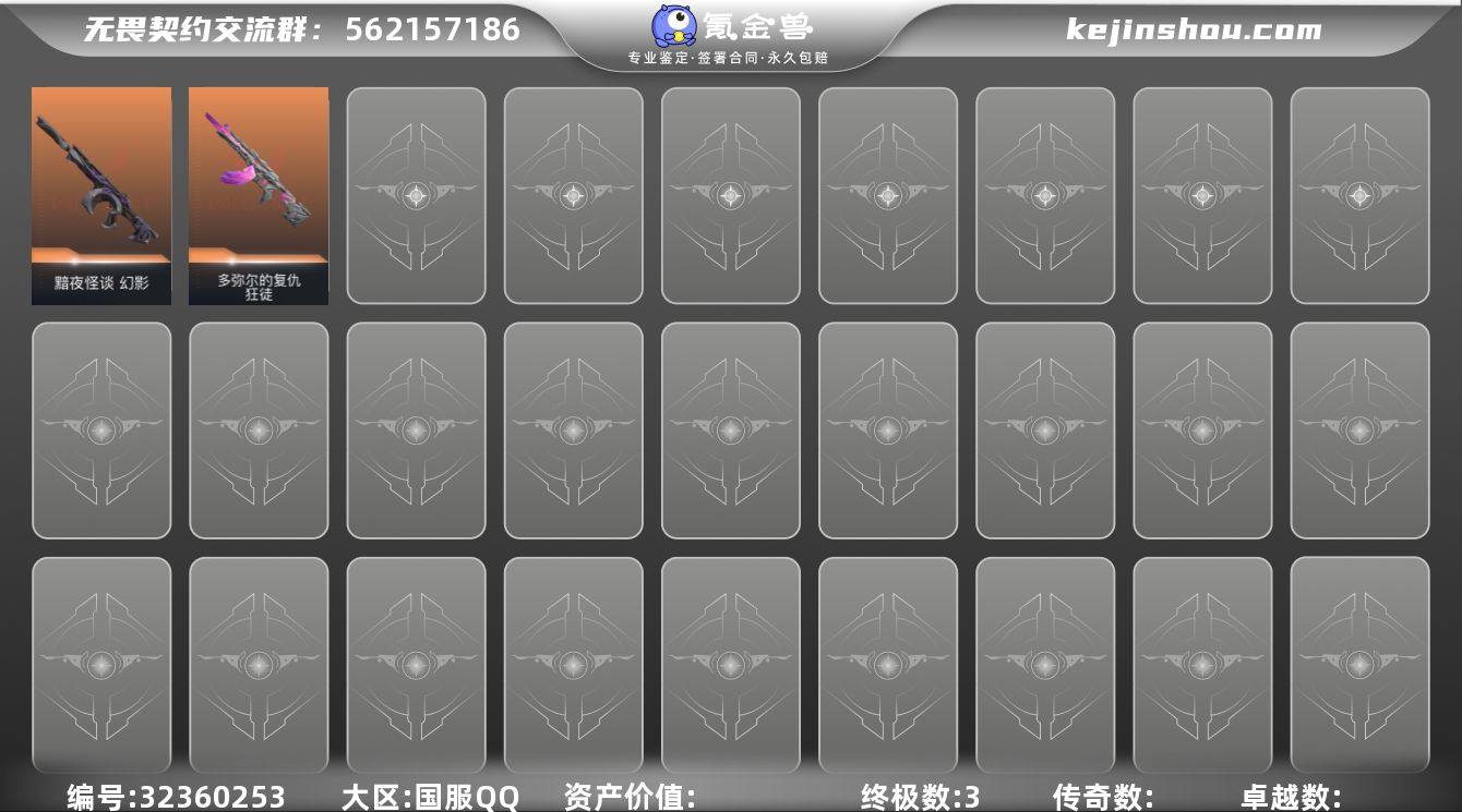 【936335】【英雄】:炼狱,暮蝶,壹决,捷风,雷兹,幽影,不死鸟,贤者,猎枭,芮娜,尚勃勒,夜露,K/O,盖可,黑梦 【近战武器】:近战武器-紫金爪刀 【狂徒】:狂徒-多弥尔的复仇 【幻影】:幻影-黯夜怪谈 【卡面】:树懒大作战 卡面,无畏契约GO!第一卷:芮娜 卡面,无畏契约GO!第一卷:零 卡面,无垠星环 卡面,《双城之战》金克丝 卡面,代号红色 卡面,新兵报到 卡面,V契约 卡面,无畏契约 卡面 【喷漆】:放下武器 喷漆,胜利属于无畏契约 喷漆,GLHF 喷漆,无畏契约 喷漆 【挂饰】:动力机箱 挂饰,天外飞客 挂饰,无畏契约 纪念币 挂饰