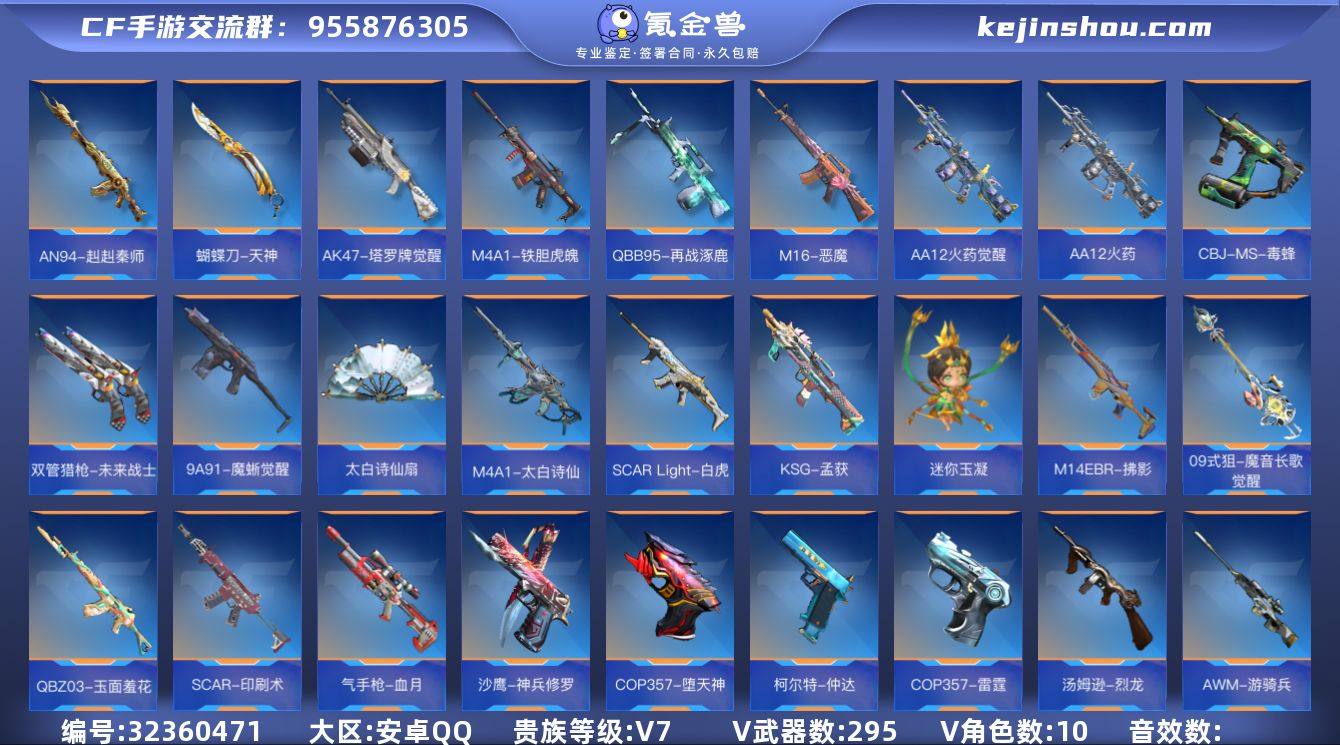 【935561】枪皇-11英雄角色数-284英雄武器数 【王者系列】:王者之狱,王者幻神,王者之隐,王者之霆,COP 357-雷霆王者,王者之尊 【热门武器】:KSG-孟获,81式-光明之神,AK47-奉先,M4A1-星象,TAC-慈,M200-幻神,AWM-游骑兵,81式-阿波罗,COP 357-雷霆,COP 357-堕天神 【角色】:樱,瞳,关小雨,职场灵狐-赛事经理,月神-X,蔡文昭,武媚-X,炽天使-X,祝融夫人,零-新生 【英雄武器】:AK47-无影,AK47-火麒麟,AK47-角斗士*2,AK47-猩红传说,AK47-燎天净火,AK47-奉先,AK47-血武士,AK47-塔罗牌觉醒,AK47-谜城烟火*2,M4A1-雷神,M4A1-黑骑士,M4A1-死神,M4A1-星象,M4A1-龙血,M4A1-竞界荣光,M4A1-运输船,M4A1-猎神,M4A1-太白诗仙,M4A1-铁胆虎魄,M4A1-青龙,SCAR-幽暗骑士,SCAR Light-白虎,SCAR-印刷术*2,SCAR-心动PICK,AN94-四凶觉醒,AN94-赳赳秦师,9A91-天神,9A91-魔蜥觉醒,M14EBR-拂影,M14EBR-玄武,M14EBR-葫芦山庄,M16-恶魔,AK12-天启,QBZ03-金色蔷薇*2,QBZ03-玉面羞花,HK417-炎龙铠甲,81式-光明之神,G36-李星云,MK47-云舞,SKS-美杜莎,G3A3-衍神兵,FN F2000-十绝阵觉醒,QBZ97-浩瀚征途,QBZ191-封神榜,QBZ191-帝皇铠甲,SBR-...