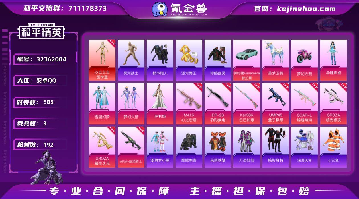 【特价出售】钱包不能注销安卓Q-1红装6稀有3载具4粉装10特效枪13热门147套装192枪皮 63514热力值 11印记 历史卓越王牌12星 【1红装】 沙丘之主-图卡盟 (2级) 【6稀有】 木乃伊 赤蝎幽灵 都市猎人 浪漫天命 派对舞王 派对舞王(金靴子) 【3载具】 保时捷Panamera(梦幻青) 星梦玉骢 双人摩托梦幻火箭 【4粉装】 梦幻火箭 雪国幻梦 萨利娅 异瞳寒姬 【10特效枪】 Famas-觉醒初号机 (6级) SCAR-L-锦绣绵绵 (5级) M416-心之恋语 (6级) AKM-幽焰骑士 (3级) Kar98K-巳巳如意 (5级) DP-28-豹影疾电 (5级) UMP45-量子极限 (5级) GROZA-镜光银凌 (5级) GROZA-精灵之光 (3级) Mk14-福马献瑞 (5级) 【13热门】 Mark.06 小丑鱼 龟仙人 呆萌铁蟹 万圣娃娃 鹰眼刺客 激萌罗小黑 暗影哥特 狂沙舞者 漫步者 破蛋小黄鸡 极速红龙 弄潮海豚 【2头盔】 梦幻火箭头盔 雪国精灵头盔 【2背包】 梦幻火箭背包 雪国精灵背包