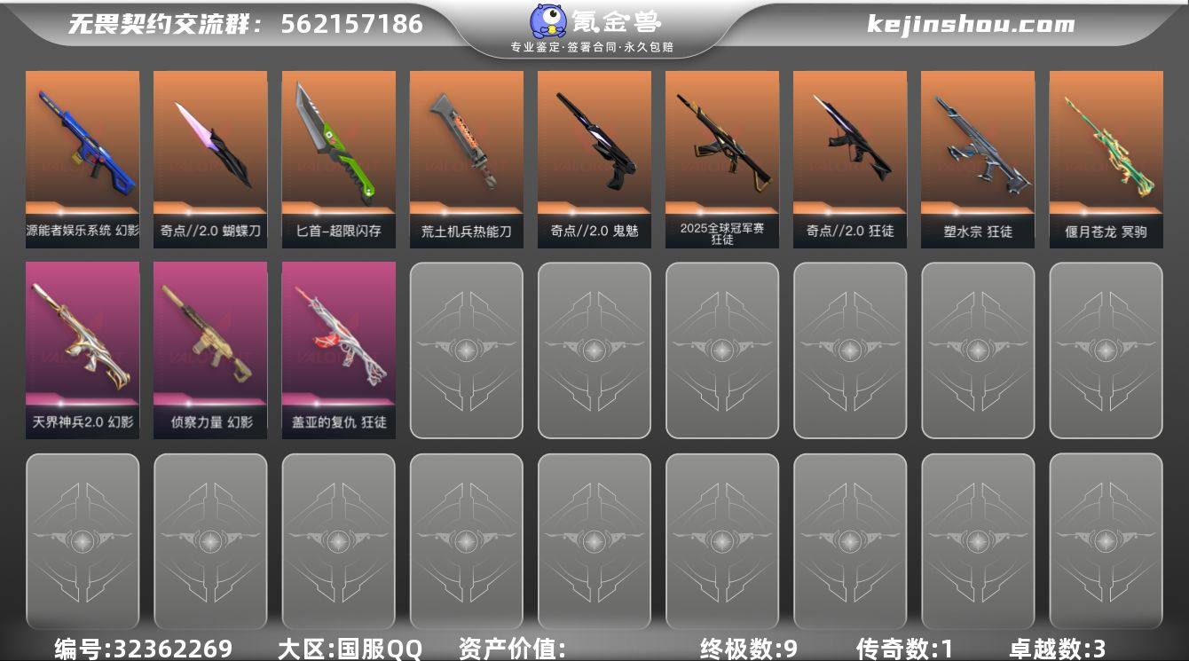 【935511】【套装】:奇点//2.0套装 【英雄】:幻棱,炼狱,维斯,暮蝶,钛狐,壹决,铁臂,捷风,雷兹,幽影,不死鸟,贤者,猎枭,蝰蛇,零,芮娜,奇乐,尚勃勒,霓虹,斯凯,夜露,星礈,K/O,海神,盖可,黑梦,钢锁 【近战武器】:近战武器-剥皮小刀,近战武器-奇点//2.0 蝴蝶刀,近战武器-超限闪存 匕首,近战武器-荒土机兵 热能刀 【狂徒】:狂徒-2025全球冠军赛,狂徒-奇点//2.0,狂徒-塑水宗,狂徒-盖亚的复仇,狂徒-荒土机兵 【幻影】:幻影-源能者娱乐系统,幻影-天界神兵//2.0,幻影-侦察力量,幻影-超限闪存,幻影-纳米打击 【戍卫】:戍卫-浮光跃金,戍卫-逆冲蛮牛 【獠犬】:獠犬-模拟赫兹,獠犬-逆冲蛮牛 【冥驹】:冥驹-偃月苍龙,冥驹-荒土机兵,冥驹-模拟赫兹 【莽侠】:莽侠-超限闪存 【战神】:战神-浮光跃金 【奥丁】:奥丁-纳米打击 【判官】:判官-纳米打击x 【雄鹿】:雄鹿-模拟赫兹,雄鹿-逆冲蛮牛 【骇灵】:骇灵-荒土机兵,骇灵-无限竞技,骇灵-浮光跃金 【蜂刺】:蜂刺-超限闪存 【标配】:标配-荒土机兵,标配-浮光跃金 【正义】:正义-超限闪存,正义-纳米打击,正义-遗愿 【鬼魅】:鬼魅-奇点//2.0,鬼魅-模拟赫兹,鬼魅-星云暗涌 【狂怒】...
