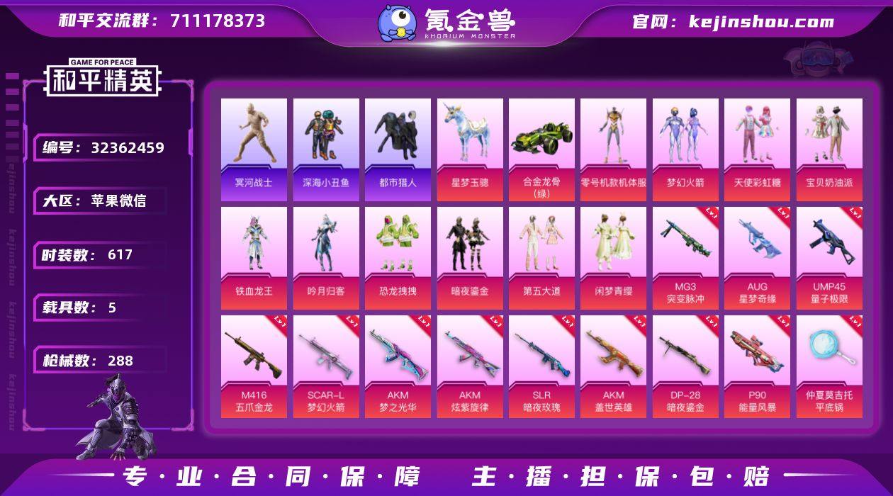 【特价出售/店主推荐】苹果 微信-1神装-39粉装-14特效枪-8载具-11粉色飞行器-171000热力值-20王牌印记-359套装-375枪皮 【红色载具】:玛莎拉蒂Grecale(幻星粉)(三级) 【红色神装等级】:魔童闹海-敖丙(三级) 【红色角色神装】:魔童闹海-敖丙 【热门品类】:粉装-梦幻火箭,粉装-缤纷油彩,套装-浪漫天命,套装-都市猎人,套装-深海小丑鱼,套装-奇异狩猎者,套装-胖达团团,套装-胖达圆圆,套装-龟仙人,套装-潮萌小黄鸭,套装-暗影哥特,套装-浪漫波比,套装-粉红小猪,套装-萌熊伴侣 【粉色套装】:粉装-粉色回忆,粉装-宝贝奶油派,粉装-金曜白虎,粉装-蝶舞迷情,粉装-梦幻火箭,粉装-金属狂野,粉装-智能音符,粉装-缤纷油彩,粉装-新星烈龙,粉装-甜蜜誓约,粉装-极致幻想,粉装-扶摇飞仙,粉装-花间之火,粉装-锦绣火鲤,粉装-草莓生巧,粉装-苍蓝魅影,粉装-翡翠骑士,粉装-绚金战神,粉装-银刃赛罗,粉装-香水柠檬,粉装-绮梦青鸾,粉装-烈焰拳霸,粉装-山涧鹿灵,角色-洛天依,角色-零号机款机体服,粉装-暗星紫秘,粉装-岚岚物语,粉装-垂柳戏鸭,蜀山剑侠-李逍遥,女娲后裔-赵灵儿,粉装-第五大道,粉装-仲夏莫吉托,角色-小蓝,角色-超弦星,角色-星梦奇缘,角色-千金淑猫,粉装-幻彩电音,角色-羊梦糖心,角色-月中灵 【粉色枪皮等级】:AKM-炫紫旋律(七级),SCAR-L-纯梦嫁纱(七级),M416-心之恋语(七级),GROZA-香水柠檬(六级),M762-甜蜜誓约(七级),蜜獾-异瞳寒姬(一级),P90-魔童闹海 敖丙(三级),Kar98K-巳巳如意(五级),SKS-碧影闪光(五级),Mk14-福马献瑞(三级),AA12-G-萌骑幻想(一级),DP-28-千金淑猫(一级),DP-28-豹影疾电(五级),MG3-洛神天依(七级) 【粉色载具】:玛莎拉蒂Grecale(幻星粉),兰博基尼Estoque(尊享铂),宝马M4(圣保罗黄),迈凯伦570S(天际蓝),合金龙骨(绿...