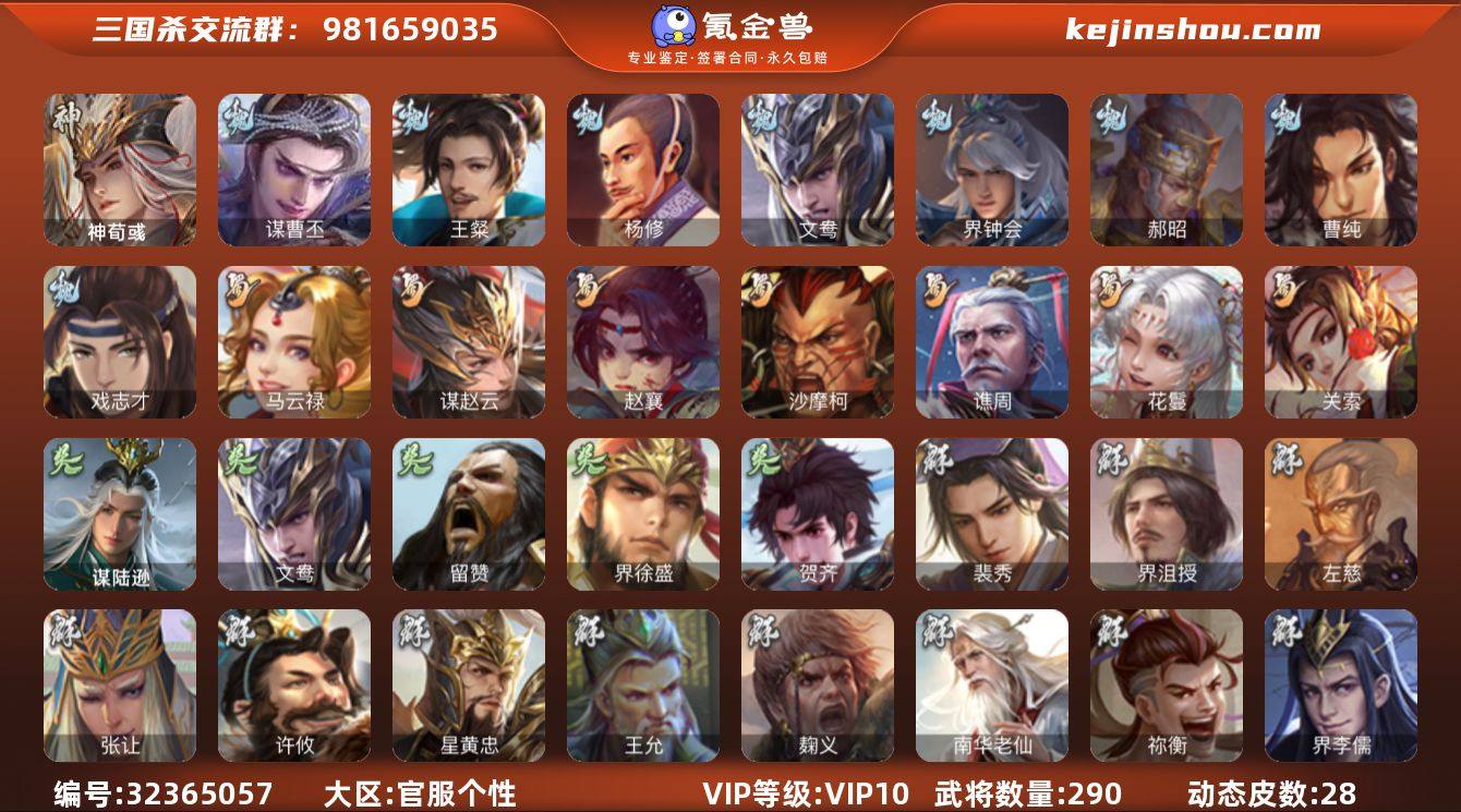 【1351】官阶:骠骑将军;VIP等级:VIP10;史诗武将数量:35;动态皮肤数量:28;武将总数:290;史诗宝珠数量:2;将魂数量:717;神将:3;魏国史诗武将:16;蜀国史诗武将:7;吴国史诗武将:4;群史诗武将:13