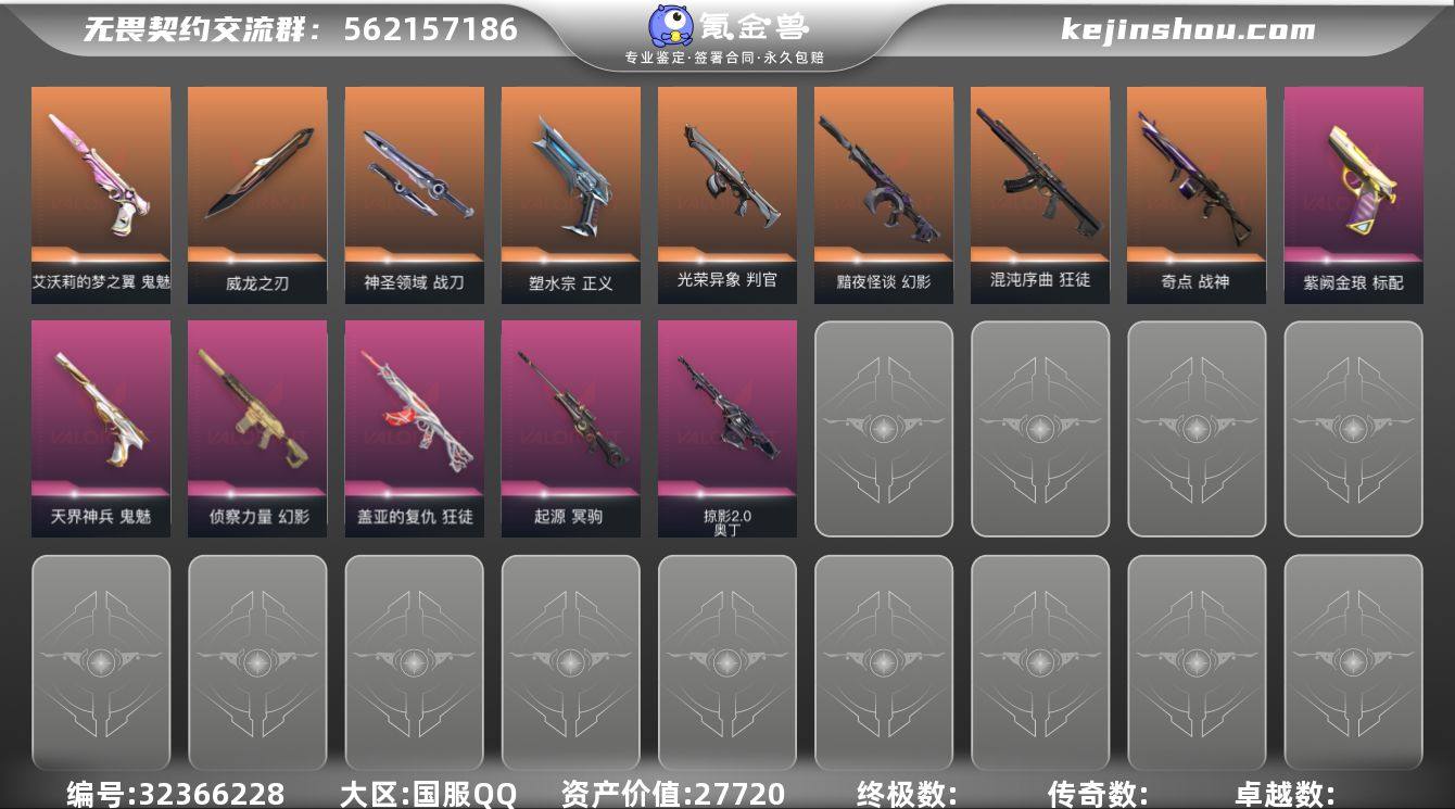 MWW498【游戏等级】Lv144 【段位】 铂金I 【R点】875 【皮肤总价值】27,310 【英雄数量】28 【皮肤数量】55 【挂饰数量】64 【卡面数量】77 【喷漆数量】69 【鬼魅】鬼魅-幻心猎手 鬼魅-诡秘蛇影 鬼魅-星云暗涌 【近战武器】近战武器-诡秘蛇影军刀 近战武器-神圣领域战刀 近战武器-龙爪 近战武器-落英飞旋 近战武器-荒土机兵热能刀 近战武器-穿花蝴蝶 【幻影】幻影-末日之翼 幻影-神圣领域 幻影-黯夜怪谈 幻影-纳米打击 【莽侠】莽侠-诡秘蛇影 莽侠-月球哨兵 【奥丁】奥丁-末日之翼 奥丁-纳米打击 【狂徒】狂徒-诡秘蛇影 狂徒-噬影者 狂徒-紫阙金琅 狂徒-洪荒怒焰 狂徒-冰点凝冻 狂徒-掠影 狂徒-日冕雄师 狂徒-海洋之星 狂徒-盖世英雄 狂徒-荒土机兵 【戍卫】戍卫-折光棱晶 戍卫-月球哨兵 戍卫-紫阙金琅 戍卫-逆冲蛮牛 【飞将】飞将-末日之翼 【蜂刺】蜂刺-折光棱晶 蜂刺-星云暗涌 【判官】判官-诡秘蛇影 判官-纳米打击 【标配】标配-折光棱晶 标配-海洋之星//2.0 标配-荒土机兵 【短炮】短炮-末日之翼 【正义】正义-西部未来 正义-月球哨兵 正义-纳米打击 【冥驹】冥驹-星云暗涌 冥驹-离子武器 冥驹-荒土机兵 【獠犬】獠犬-神圣领域 獠犬-逆冲蛮牛 【骇灵】骇灵-星云暗涌 骇灵-荒土机兵 【雄鹿】雄鹿-月球哨兵 雄鹿-逆冲蛮牛 【战神】战神-神圣领域 【狂怒】狂怒-神圣领域 狂怒-逆冲蛮牛