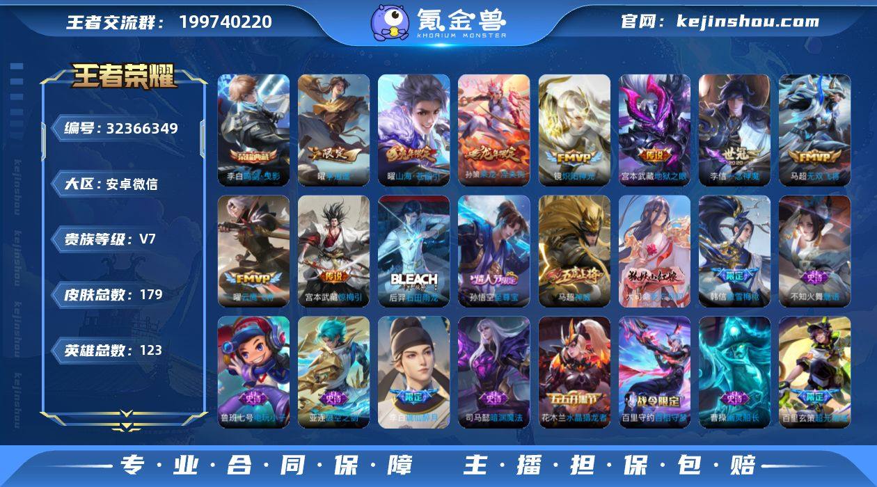 V7 1典藏 12传说 123英雄 179皮肤 可修改实名 男号 【稀有英雄】敖隐(小龙人),大司命,韩信(韩跳跳),夏洛特(夏师傅),艾琳,橘右京(橘子),娜可露露(鸟人),不知火舞,赵云,金蝉(唐僧),戈娅 【荣耀水晶】鸣剑·曳影 【传说皮】乘龙·淬吴钩(孙策年限),琥珀纪元马超,李逍遥,地狱之眼,一念神魔,云鹰飞将(小将军),炽阳神光,无双飞将,山海·苍雷引(电光曜子),惊梅引 【珍宝阁皮】女武神,玩趣恶龙 【赛季/战令皮】噬灭天穹(s37),古海寻踪(s33),星界游侠,海盐诗旅(s30),擒涛扼浪(s31),顽趣-梦奇,剑破天穹(s35),天穹祈灯(s34),天穹之誓(s36),蔡文姬夏日便利店,虞姬夏日便利店,暖冬·兔眠,混沌棋(s18),疑决卦(s19),醍醐杖(s20),原初探秘者(s21),万华元夜(s22),演武夺筹(s23),驱傩正仪(s24),千军破阵(s25),暗影游猎(游乐娃子),火炮绅士,沙漠行僧(s26),金庭之子(s27),电玩高手(电玩铁子),大漠名商(s28),云中旅人(s29) 【史诗皮】谪仙醉月,破空之剑,星界战将,百相守梦-百里守约,东方月初,超元猎域,石田雨龙,紫霞仙子,电玩小子(小书包),特工魅影,千年之狐,江河有灵,冰冠公主,偶像歌手,魅语,末日机甲-吕布,猫狗日记-孙策,节奏热浪,摇滚巨星,水果甜心,功夫厨神,幽灵船长,鬼剑武藏,暗渊魔法,心灵战警,...