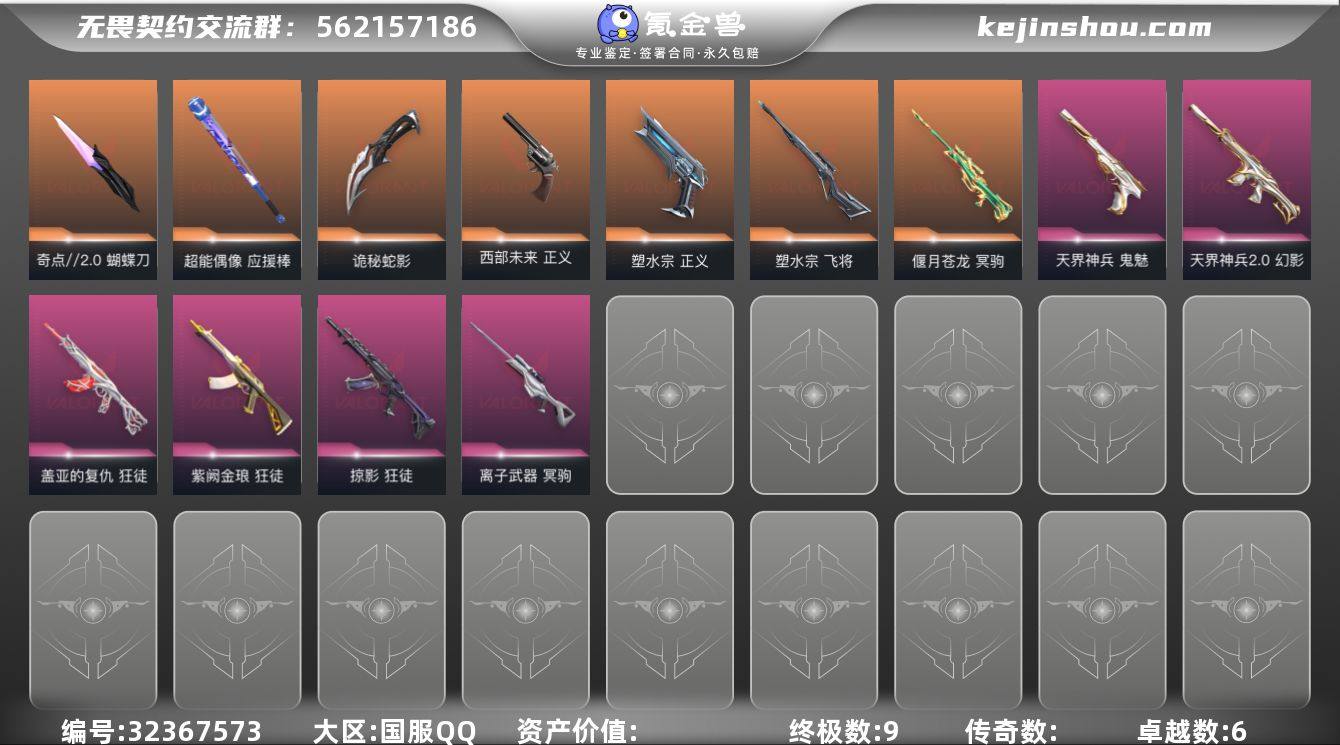 【英雄】:幻棱,炼狱,维斯,暮蝶,钛狐,壹决,捷风,雷兹,幽影,不死鸟,贤者,猎枭,零,芮娜,尚勃勒,夜露,盖可 【近战 武器】:近战武器-剥皮小刀,近战武器-奇点//2.0 蝴蝶刀,近战武器-超能偶像 应援棒,近战武器-天御刀,近战武器-诡秘蛇影 军刀 【狂徒】:狂徒-掠影,狂徒-盖亚的复仇,狂徒-紫阙金琅,狂徒-超能偶像,狂徒-诡秘蛇影 【幻影】:幻影-天界神兵//2.0,幻影-聚合之力,幻影-末日之翼 【戍卫】:戍卫-超能偶像,戍卫-折光棱晶 【獠犬】:獠犬-采蜜小蜂队 【冥驹】:冥驹-偃月苍龙,冥驹-离子武器 【飞将】:飞将-塑水宗,飞将-聚合之力,飞将-末日之翼 【莽侠】:莽侠-诡秘蛇影 【战神】:战神-采蜜小蜂队 【奥丁】:奥丁-末日之翼 【判官】:判官-超能偶像,判官-诡秘蛇影,判官-采蜜小蜂队 【蜂刺】:蜂刺-聚合之力,蜂刺-折光棱晶 【标配】:标配-超能偶像,标配-折光棱晶 【正义】:正义-塑水宗,正义-西部未来,正义-超限闪存,正义-传奇制造,正义-纳米打击 【鬼魅】:鬼魅-天界神兵,鬼魅-诡秘蛇影,鬼魅-采蜜小蜂队,鬼魅-星云暗涌 【狂怒】:狂怒-火线狂怒,狂怒-聚合之力 【短炮】:短炮-蛇吻,短炮-末日之翼 【卡面】:终章:激斗汉堡 卡...