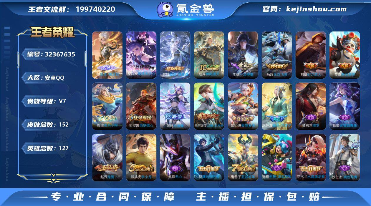 【WZ181307】安卓Q-V7-最强王者段位-127英雄-212皮肤-1典藏皮肤-6传说-54史诗【荣耀典藏】:韩信弑枪猎影【传说皮肤】:云缨幻光神枪,孙悟空零号赤焰,李信一念神魔,花木兰冠军飞将,宫本武藏地狱之眼,狄仁杰超时空战士【限定皮肤】:狄仁杰阴阳师,赵云皇家上将,嬴政优雅恋人,孙尚香蔷薇恋人,庄周高山流水,夏侯惇朔风刀,典韦穷奇,狄仁杰魔术师,狄仁杰万华元夜,达摩沙漠行僧,项羽海滩派对,老夫子醍醐杖,程咬金演武夺筹,兰陵王金庭之子,孙悟空零号赤焰,孙悟空孙行者,后羿如梦令,李元芳云中旅人,钟馗驱傩正仪,杨玉环遇见飞天,雅典娜单词大作战,雅典娜黎明之约,鬼谷子原初探秘者,鬼谷子五谷丰年,苏烈千军破阵,百里玄策原初追逐者,弈星混沌棋,梦奇顽趣,沈梦溪大漠名商,明世隐疑决卦,裴擒虎李小龙,裴擒虎擒涛扼浪,狂铁御狮,盾山御銮,猪八戒猪悟能,蒙犽狂想玩偶喵,鲁班大师探海日志,桑启海盐诗旅,阿古朵江河有灵,张良古海寻踪,蒙恬荣光圣徽,鬼谷子天穹祈灯,沈梦溪龙舞盛年,刘邦剑破天穹,程咬金群星魔术团,周瑜熔金海岸【赛季限定】:典韦穷奇,狂铁御狮,盾山御銮,夏侯惇朔风刀,弈星混沌棋,明世隐疑决卦,老夫子醍醐杖,鬼谷子原...