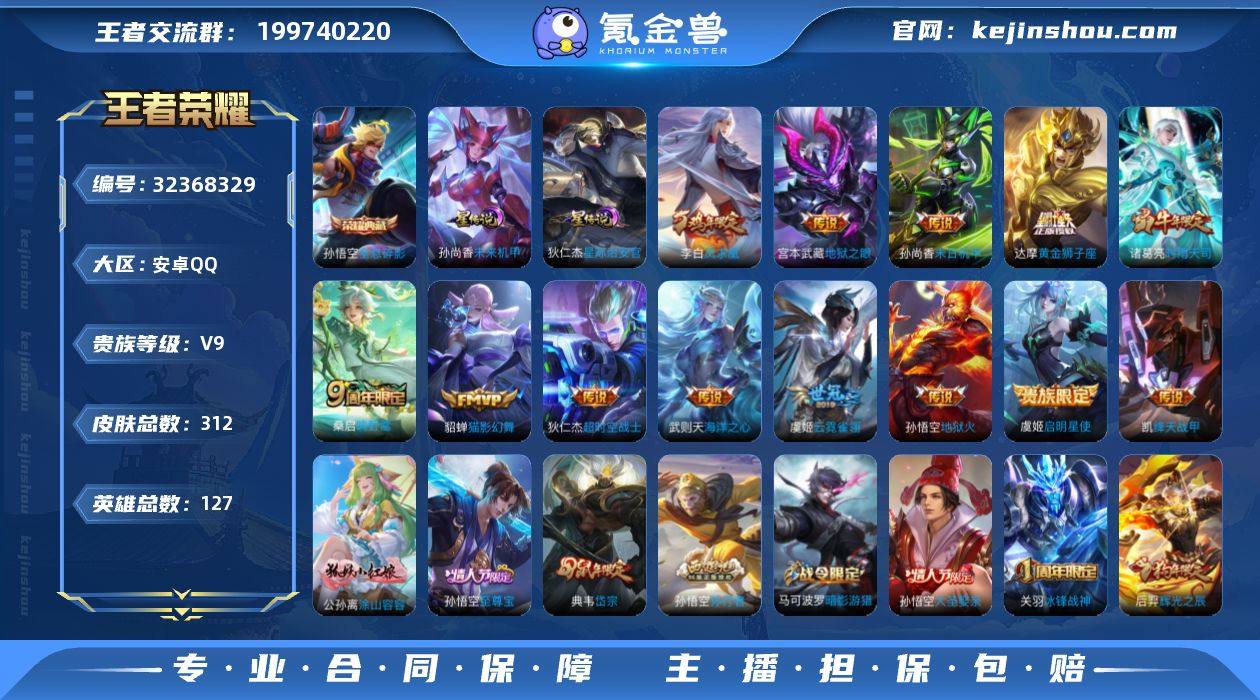 可换绑【捡漏V9精品号·孙悟空双典藏含武则天英雄·时雨天司·凤求凰·牛年吕布·孙行者·韩信飞衡岱宗·神奇女侠·贵族积分10万】2星传说,12王者印记,满级铭文,可二次CD18289,安卓Q-V9-312皮肤-1典藏皮肤-1典藏英雄-13传说-85史诗【英雄全皮】:刘邦全皮,猪八戒全皮【荣耀典藏】:武则天英雄,孙悟空全息碎影【星元皮肤】:孙尚香未来机甲,狄仁杰星际治安官【传说皮肤】:桑启鸣野蒿,诸葛亮时雨天司,铠绛天战甲,虞姬启明星使,貂蝉猫影幻舞,虞姬云霓雀翎,达摩黄金狮子座,李白凤求凰,孙尚香末日机甲,宫本武藏地狱之眼,孙悟空地狱火,武则天海洋之心,狄仁杰超时空战士【限定皮肤】:白起狰,大乔绒语心约,姜子牙天穹之誓,狄仁杰阴阳师,虞姬凯尔特女王,赵云皇家上将,妲己时之彼端,嬴政白昼王子,鲁班七号狮舞东方,庄周高山流水,高渐离死亡摇滚,阿轲迷踪丽影,孙膑妖精王,扁鹊炼金王,芈月重明,芈月幻夜卜梦,吕布猎兽之王,吕布御风骁将,周瑜赤莲之焰,元歌云间偶戏,元歌无心,夏侯惇朔风刀,甄姬游园惊梦,曹操烛龙,典韦穷奇,典韦岱宗,马可波罗暗影游猎,狄仁杰魔术师,狄仁杰万华元夜,达摩星际陆战队,达摩沙漠行僧,项羽海滩派对,老夫子醍醐杖,关...