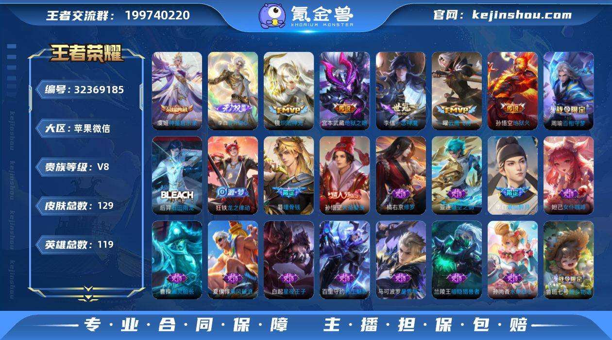 V8 2典藏 4无双 2珍品传说 11传说 119英雄 129皮肤 可修改实名 女号 【英雄全皮】影全皮,大禹全皮 【稀有英雄】大司命,嬴政(始皇帝),韩信(韩跳跳),夏洛特(夏师傅),艾琳,橘右京(橘子),娜可露露(鸟人),不知火舞,赵云,金蝉(唐僧),戈娅 【荣耀水晶】神鉴启示录,千魇归渊 【无双皮】问心剑,无相,神罪,碎月剑心(李白无双) 【珍品传说】怪盗基德,时之奇旅-孙策 【传说皮】纵目迁山,神树通天,地狱火,地狱之眼,一念神魔,云鹰飞将(小将军),炽阳神光,澜逐花归海 【珍宝阁皮】妄想食味 【赛季/战令皮】噬灭天穹(s37),海盐诗旅(s30),奇幻香踪,探海日志(s32),地狱燃心,剑破天穹(s35),天穹祈灯(s34),苍威无极,天穹之誓(s36),蔡文姬夏日便利店,虞姬夏日便利店,暗影游猎(游乐娃子),潮玩骑士王 【史诗皮】谪仙醉月,破空之剑,星界特工,茶境仙,奇遇星旅,蔬乡物语(鲁班七号),埋骨钱,线条小狗-周瑜,涂山容容,百相守梦-周瑜,龙之律动,石田雨龙,百相守梦-黄忠,特工魅影,真我赫兹(百里守约),冰冠公主,偶像歌手,修罗,女仆咖啡,水果甜心,绅士熊喵,星夜王子,功夫厨神,暗隐猎兽者,幽灵船长,鬼剑武藏,地狱岩魂,乘风破浪,圣诞狂欢,圣诞恋歌,暗夜贵公子,未来纪元-赵云 【限定皮】鸣野蒿,齐天大圣,李小龙,大圣...