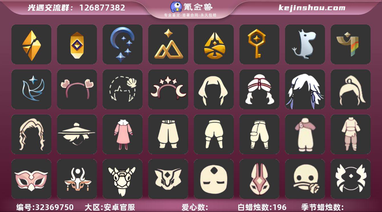 12季11翼白枭透明蝶翼巫师帽蝙蝠斗玫瑰花武士裤王子围巾跑鞋 资源:蜡烛162 爱心35 红烛8 翼11 已毕业地图:全图 毕业季节:半圣岛 梦想季 王子季 风行季 潜海季 表演季 欧若拉 破晓季 筑巢季 二重奏 彩染季 青鸟季卡 毕业物品:凤凰面具 凤凰斗篷 小王子发型 小王子套装 玫瑰花 小王子套装 多羽发饰 蓝黄羽袖 单边小辫 暗红斗篷 氧气面具 黄眉企鹅面具 燕尾斗篷 白枭发型 留辫蘑菇头 高领舞服 透明蝶翼斗 双翼遥鲲斗篷 冥龙斗篷 设计师长袍 光之子试衣 合奏挂画 蓝色燕尾服 白色高脚钢琴 彩染围巾斗篷 辉光羚羊面具 稀有礼包:悦动跑鞋 南瓜头 巫师帽 大桔大利 鲤跃龙门 雪花发夹 贝壳发夹 玉兔头饰 星月头冠 彩虹耳钉 巫树犄角 圣诞鹿角 王子围巾 蝙蝠斗 狐狸背包 冥龙南瓜 热门裤子:鳐鲲长袍 绑带舞服 墨绿长裤 白棉裤 搓澡巾 紧身连体衣 武士裤 王子服 羽袖长袍 小丑服 美工衣 小红裙 热门面具:矮人面具 狐狸面具 黄鼠狼面具 兔子面具 凤凰面具 潜海面具 黄眉面具 一字眉 向导面具 青鸟面具 玫瑰花面具 黑脸 青鸟面饰 热门发型:海草头 爆炸头 大胡子 小飞象 雨妈 卡卡 平菇 龙骨 指甲盖 箬笠 蝴蝶结 公主头 粗辫 水母头 书虫 总裁头 正太头 高马尾 明制帽 郡主头 斗笠 虚荣 白枭 圆环发辫 留辫蘑菇头 樱花头 南瓜头 巫师帽 猫头 女巫发型 圣诞帽 光头 小王子发型 热门头饰:毕业羽毛 桔子发饰 花环 珊瑚发饰 雪花发饰 贝壳发饰 兔子发饰 红耳机 单边发饰 星月发饰 蓬头耳机 巫树犄角 圣诞鹿角 热门斗篷:五星斗篷 花瓣斗篷 红金斗篷 黑金斗篷 白金斗篷 蝴蝶斗篷 汉服斗篷 小王子围巾斗 燕尾服斗篷 暗花斗 鳐鲲长斗 展翼圆环斗 透明蝶翼 灰色斗篷 双排扣斗篷 镂空斗篷 镂空三条斗 彩染季围巾斗篷 青鸟面具 樱花斗 郁金香斗篷 地球日斗篷 海洋斗篷 旋涡斗...