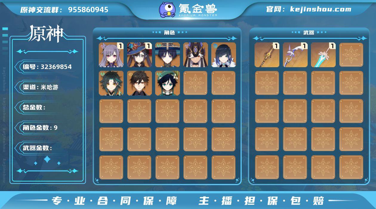 【金色角色】:流浪者(0命),赛诺(0命),夜兰(0命),魈(0命),钟离(0命),温迪(0命),刻晴(1命),莫娜(1命) 【拥有武器】:赤沙之杖(精1),天空之傲(精1),阿莫斯之弓(精1) 【紫色角色】:菲米尼(0命),琳妮特(0命),绮良良(0命),米卡(0命),坎蒂丝(0命),多莉(1命),柯莱(1命),鹿野院平藏(1命),久岐忍(0命),云堇(0命),五郎(0命),托马(0命),九条裟罗(0命),烟绯(满命),罗莎莉亚(0命),辛焱(0命),迪奥娜(4命),砂糖(满命),雷泽(2命),丽莎(0命),香菱(3命),安柏(0命),班尼特(2命),行秋(0命),芭芭拉(4命),凝光(2命),诺艾尔(4命),凯亚(0命),重云(0命)