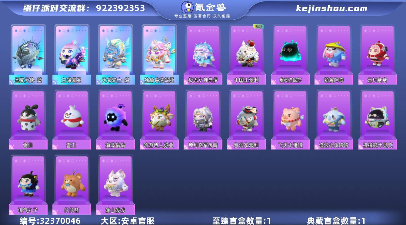 4幻彩18紫圣翼天使堕天穹骑士湛主唱曜星独角兽芬妮亚仔仔熊小浮冰淘气丸子飞天小猪班尼 历史潮流:3.2万 段位:二阶鸽子蛋 等级:41 幻彩套装数量:4 紫色套装数量:18 幻彩套装:独角兽芬妮亚 天穹骑士湛 主唱曜星 圣翼天使堕 紫色套装:音乐家蕾利 飞天小猪班尼 极光女神典伊 小浮冰 吟游诗人弥亚 云村音音 幽灵猫妮莎 小国王蕾利 神月将军夜魄 海藻偷偷 雪王 流浪小象哆哆 兔仙 涂山浅浅 机械鼓手贝克 仔仔熊 萌兔阿奇 淘气丸子 背饰:天马法杖 影月耀盾 裁决圣环 玩具:鱼篓 失重电吉他 云梦兜兜龙 呦呦:摇摇兔 蒙胧胧"