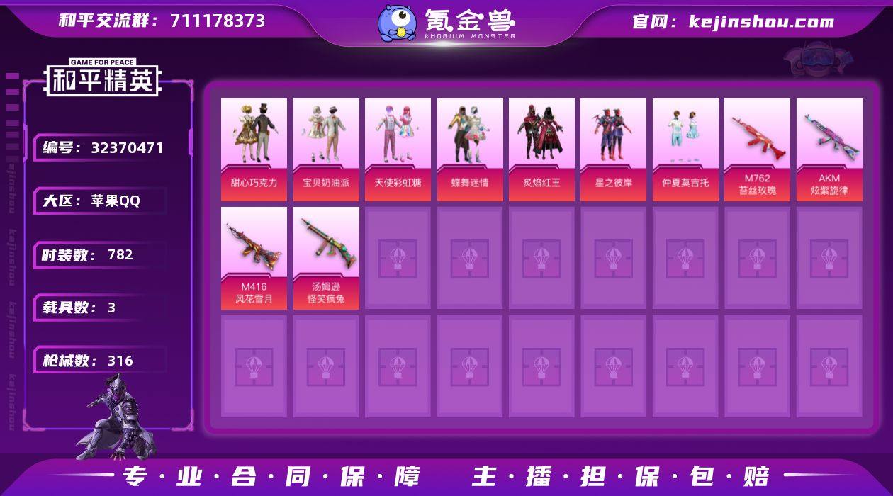 【稀有枪皮】AMR-智耀战神,AKS-74U-星穹咏叹调,MG3-辉羽雀灵,AUG-暖羊咩咩,Vector-最终圣卫者,P90-冷漠罗丽,蜜獾-荧海星豚,破片手榴弹-美味星星糖,DP-28-千金淑猫,Kar98K-巳巳如意,DP-28-豹影疾电,SCAR-L-魔童闹海 哪吒,AKS-74U-森灵之息,MK14-福马献瑞,M416风花雪月,AKM炫紫旋律,汤姆逊怪笑疯兔,SCAR-L纯梦嫁纱