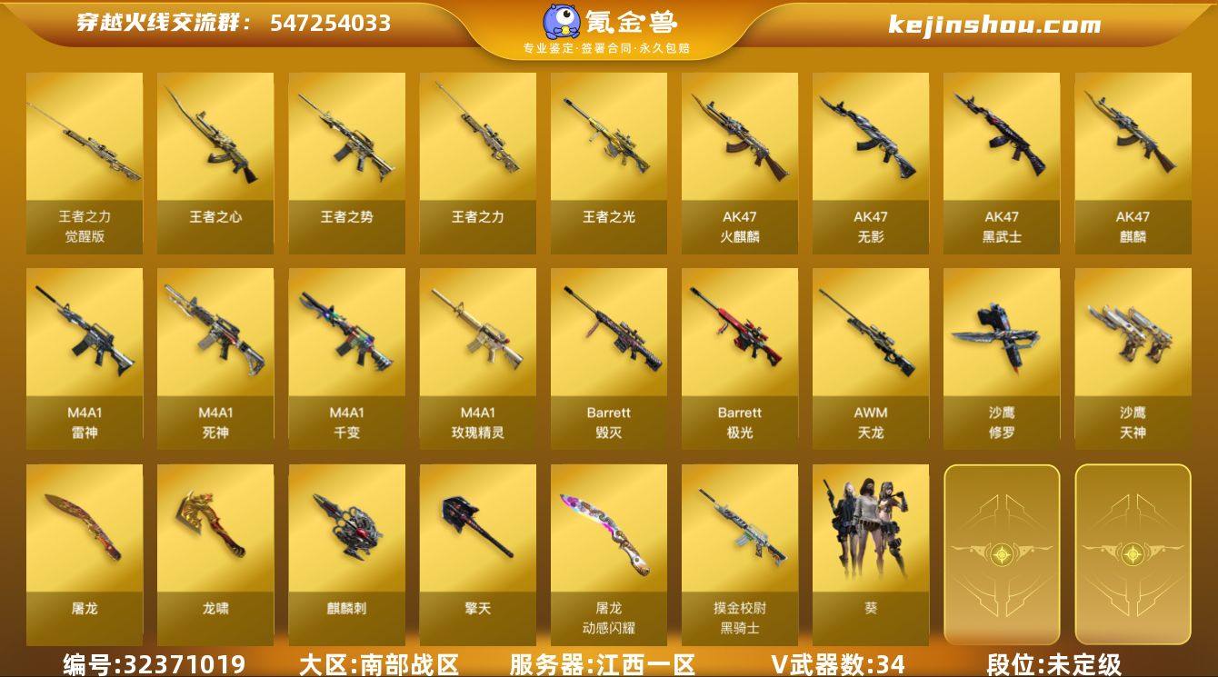 MCF892【可二次 35V 王者之光/心/势/力】【等级】100【区服】江西一区【英雄角色】1【英雄武器】34【王者级武器】王者之光 王者之心 王者之势 王者之力【英雄级角色】葵【英雄级武器】AWM-天龙 AK47-黑武士 AK47-黑武士 AK47-麒麟 M4A1-玫瑰精灵 M4A1-死神 AK47-黑武士 AK47-麒麟 M4A1-玫瑰精灵 M4A1-玫瑰精灵 M4A1-死神 M4A1-死神 AK47-无影 M4A1-玫瑰精灵 麒麟刺 沙鹰-修罗 沙鹰-修罗 沙鹰-修罗 龙啸 屠龙 AK47-黑武士 沙鹰-天神 Barrett-极光 屠龙 屠龙 沙鹰-天神 M4A1-雷神 AK47-火麒麟 M4A1-千变 Barrett-毁灭 擎天 龙啸 沙鹰-修罗 屠龙【源级武器】源·雷神 源·天龙 源·火麒麟 源·雷神 黑骑士-摸金校尉【挑战级武器】乱世【精英级武器】金牛座-典藏版【通用级角色】潘多拉-X 圣诞潘多拉-X 芳心审判者【强化级角色】复仇者 堕天使 G.E.M.邓紫棋 精英部队 王力宏【普通武器】手雷-万圣节2021 绿色烟雾弹 绿色烟雾弹 激浪烟雾弹 EVO III-蓝色魅影 斯太尔-封神 沙鹰-御龙 AWM-恶棍-枪王排位 HK417-碳素 破天狂龙 EVO III-秘银 闪光弹-枪王排位 黄金AK-47 新USP-枪王排位奖励 M4A1-战龙 激光匕首 胜利奖杯手雷-枪王排位 新USP-枪王排位奖励 暗金M200 丛林匕首-枪王排位 M4A1 M...
