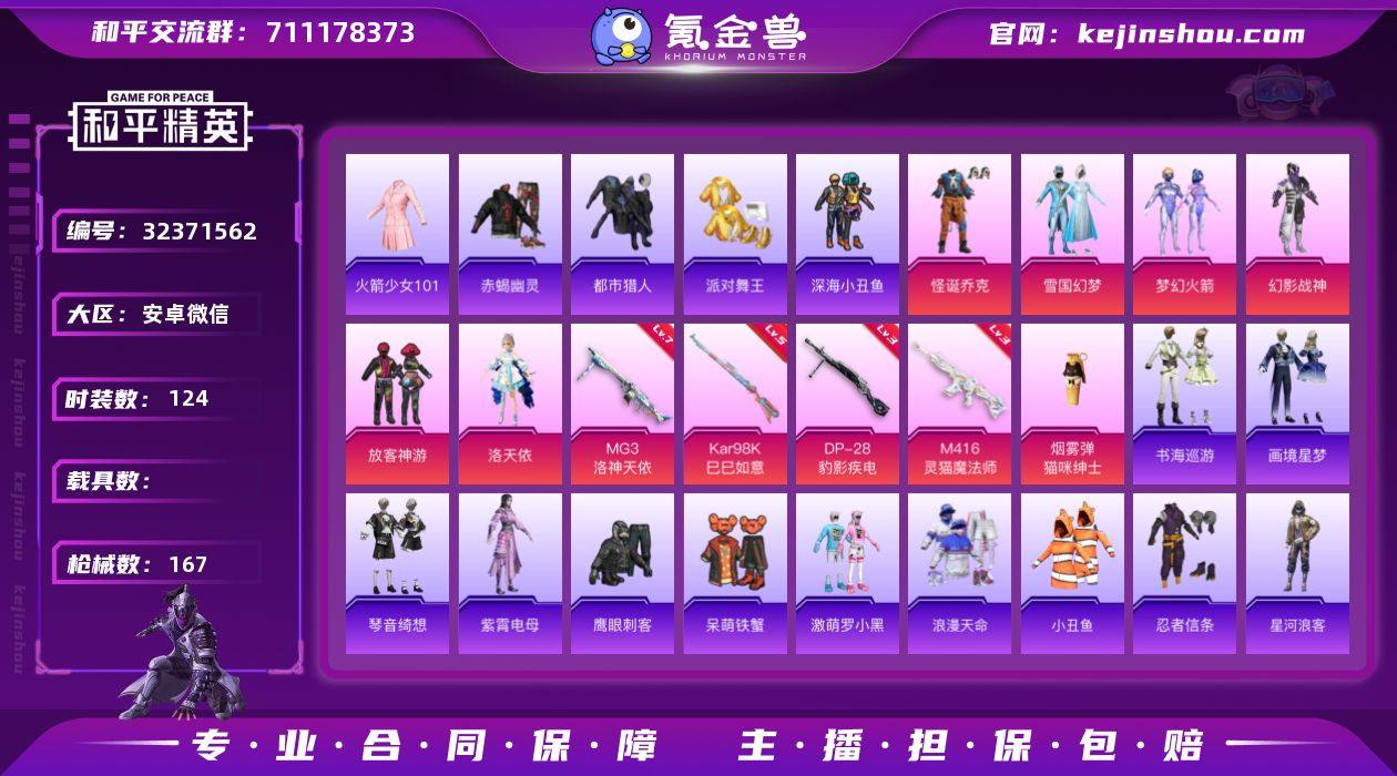 M1045859【全网最热门男神素材号 AUG-星梦奇缘3级 1红装5载具11粉装9特效 图卡盟(2级)初号机 三姐妹 放客神游 怪诞乔克 天网 太空漫步 寒蝎 都市 金鞋 哥特 萌熊 百万伏特背包一套 星梦奇缘3级 超新星8级】苹果Q-1红装9稀有5载具11粉装9特效枪23热门168套装206枪皮 78578热力值 7印记 历史卓越王牌15星 【1红装】 沙丘之主-图卡盟 (2级) 【9稀有】 寒蝎幽灵 M416-星际漫游 M416-南瓜骑士 AKM-百万伏特 都市猎人 浪漫天命 派对舞王 天网终结者 派对舞王(金靴子) 【5载具】 宝马M4(圣保罗黄) 星河领航(磐石银) 南瓜车 迈凯伦塞纳(冷萃蓝) 星梦玉骢 【11粉装】 觉醒初号机 宝贝奶油派 天使彩虹糖 甜心巧克力 南瓜骑士 雪月幻音 怪诞乔克 星际漫游者 放客神游 数码大师 绚金战神 【9特效枪】 M416-五爪金龙 (1级) M416-超新星 (8级) AKM-魔法神域 (3级) AKM-幽焰骑士 (1级) Kar98K-巳巳如意 (5级) DP-28-豹影疾电 (1级) AUG-星梦奇缘 (3级) SCAR-L-天蓬元帅 (7级) 破片手榴弹-瓶中星球 (6级) 【23热门】 Mark.06 浪漫假日 红熊茄茄 太空漫步 雪山精英 恶魔人蛛 梦魇先生 万圣娃娃 鹰眼刺客 激萌罗小黑 黄金大亨 暗影哥特 粉红小猪 忍者信条 水银刺客 萌熊伴侣 酷熊伴侣 狂沙舞者 漫步者 风华少年志 白月香洋装 极速红龙 M24-奇异狩猎者 【4头盔】 国宝胖达头盔 甜心宝贝头盔 百万伏特头盔 幻影战神头盔 【3背包】 甜心宝贝背包 百万伏特背包 萌熊伴侣背包 营地ID:774680572