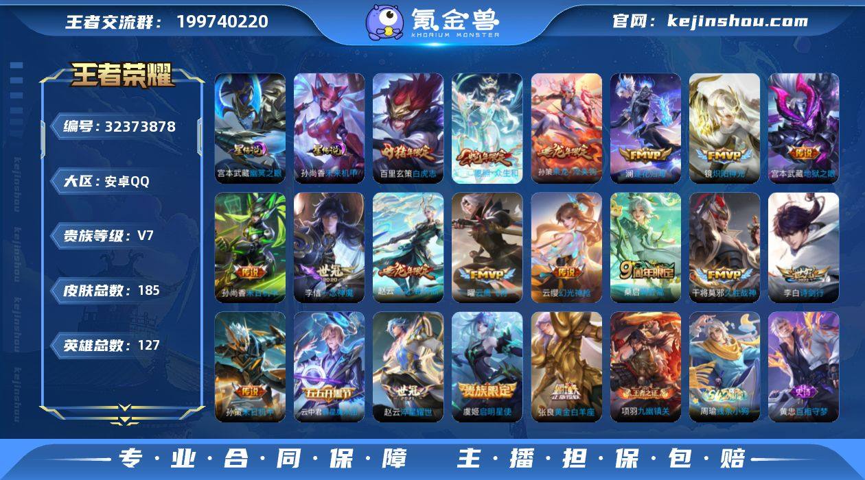 安卓Q-V7-最强王者段位-127英雄-185皮肤-19传说-60史诗【英雄全皮】:孙权全皮,空空儿全皮,影全皮【传说皮肤】:妲己愿照众生和,云缨幻光神枪,桑启鸣野蒿,云中君群星魔术团,孙策乘龙淬吴钩,赵云乘龙铭钟鼎,澜逐花归海,李白诗剑行,孙策末日机甲,赵云淬星耀世,镜炽阳神光,虞姬启明星使,曜云鹰飞将,李信一念神魔,张良黄金白羊座,干将莫邪久胜战神,百里玄策白虎志,孙尚香末日机甲,宫本武藏地狱之眼【限定皮肤】:暃埋骨钱,蒙犽顽岩魄,蔡文姬夏日便利店,虞姬夏日便利店,姜子牙天穹之誓,狄仁杰阴阳师,赵云皇家上将,典韦蓝屏警告,狄仁杰魔术师,项羽海滩派对,孙悟空至尊宝,虞姬启明星使,百里玄策白虎志,梦奇顽趣,裴擒虎李小龙,裴擒虎擒涛扼浪,云中君纤云弄巧,鲁班大师探海日志,桑启海盐诗旅,艾琳女武神,艾琳流音漫舞,司空震地狱燃心,阿古朵江河有灵,张良古海寻踪,蒙恬荣光圣徽,高渐离燃音魔法,妲己灵卜魔法,鬼谷子天穹祈灯,伽罗琥珀纪元,姬小满妄想食味,孙策乘龙淬吴钩,赵云乘龙铭钟鼎,沈梦溪龙舞盛年,鲁班七号蔬乡物语,李元芳蔬乡物语,刘邦剑破天穹,程咬金群星魔术团,云中君群星魔术团,周瑜熔金海岸【年限皮肤】:百里玄...