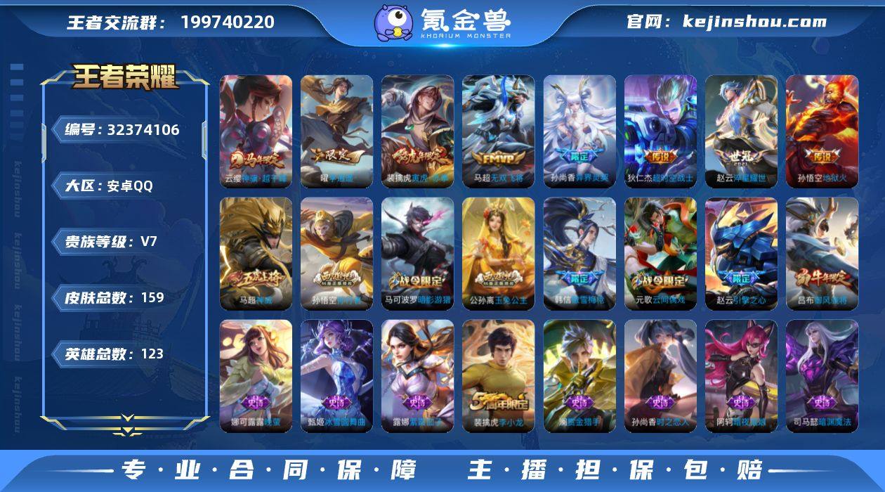 【特价出售/店主推荐】安卓Q-V7-至尊星耀III段位-127英雄-250皮肤-13传说-60史诗 【英雄全皮】:影全皮 【传说皮肤】:后羿神树通天,桑启鸣野蒿,孙尚香乘龙问璇玑,孙策乘龙淬吴钩,澜逐花归海,公孙离记忆之芯,李元芳飞鸢探春,镜炽阳神光,曜云鹰飞将,干将莫邪久胜战神,虞姬云霓雀翎,达摩黄金狮子座,梦奇胖达荣荣 【限定皮肤】:姜子牙天穹之誓,杨戬破阵退雄兵,狄仁杰阴阳师,赵云皇家上将,墨子神迹守卫,嬴政白昼王子,孙尚香蔷薇恋人,鲁班七号狮舞东方,庄周高山流水,吕布猎兽之王,周瑜赤莲之焰,元歌无心,夏侯惇朔风刀,典韦蓝屏警告,马可波罗暗影游猎,狄仁杰魔术师,狄仁杰万华元夜,达摩沙漠行僧,项羽海滩派对,老夫子醍醐杖,老夫子航海奇遇记,程咬金演武夺筹,韩信傲雪梅枪,兰陵王驯魔猎人,兰陵王金庭之子,牛魔御旌,后羿圣弓游侠,李元芳云中旅人,钟馗神迹守卫,钟馗驱傩正仪,干将莫邪真爱魔法,鬼谷子原初探秘者,鬼谷子五谷丰年,苏烈千军破阵,弈星混沌棋,公孙离玉兔公主,沈梦溪大漠名商,明世隐疑决卦,裴擒虎李小龙,裴擒虎擒涛扼浪,狂铁御狮,米莱狄御霄,云中君纤云弄巧,盾山御銮,猪八戒猪悟能,上官婉儿梁祝,嫦娥拒霜思,鲁班大师探海日志,桑启海盐诗旅,张良古海寻踪,蒙恬荣光圣徽,高渐离燃音魔法,妲己灵卜魔法,鬼谷子天穹祈灯,伽罗琥珀纪元,姬小满妄想食味,大乔乘龙忆丹青,孙尚香乘龙问璇玑,孙策乘龙淬吴钩,沈梦溪龙舞盛年,鲁班七号蔬乡物语,李元芳蔬乡物语,刘邦剑破天穹,程咬金群星魔术团,镜青焰无极,项羽苍威无极,刘备异域游侠,周瑜熔金海岸 【年限皮肤】:马超神威,大乔乘龙忆丹青,孙尚香乘龙问璇玑,孙策乘龙淬吴钩 【赛季限定】:夏侯惇朔风刀,狄仁杰万华元夜,达摩沙漠行僧,老夫子醍醐杖,程咬金演武夺筹,兰陵王金庭之子,张良古...