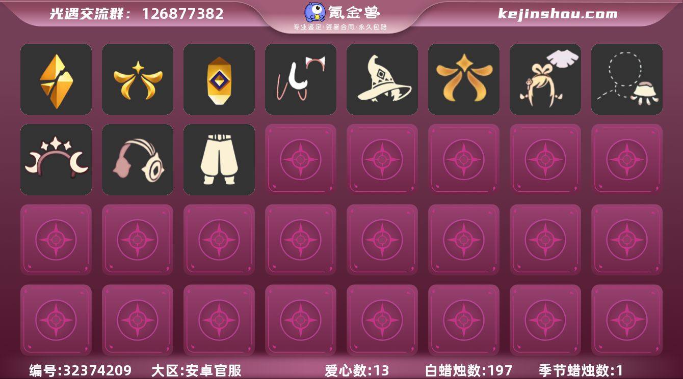 【XQ1241】 ✅官服4季奶14蝶翼斗巫师绊爱星月皮皮猫祥云水母矮人黑脸公主头书虫高马尾虚荣竖琴 ✅渠道 :安卓手机号✅4.15可换绑 ✅最高:2.109最矮:14.109目前:2.479 ✅资源:蜡烛:197爱心:13翼数量:36 ✅毕业地图:无 ✅毕业季节:破晓季,欧若拉季,追忆季卡,迁徙季卡 ✅礼包:祥云服饰,水母肩饰,巫师帽,绊爱套装,星月头冠,彩虹耳机,欧若拉之声,皮皮猫 ✅热门物品:矮人面具,黑脸,公主头,书虫,高马尾,虚荣,竖琴