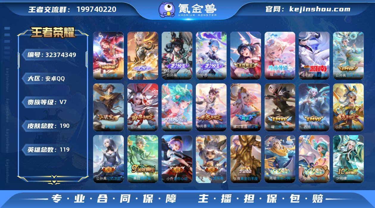安卓Q-V9-至尊星耀III段位-129英雄-429皮肤-2典藏皮肤-1典藏英雄-2无双-1珍品传说-36传说-127史诗【英雄全皮】:嬴政全皮,孙权全皮,鬼谷子全皮,猪八戒全皮,敖隐全皮,空空儿全皮,影全皮【荣耀典藏】:武则天英雄,孙悟空全息碎影,韩信弑枪猎影【无双皮肤】:甄姬雪境奇遇,铠神罪【珍品传说】:孙策时之奇旅【传说皮肤】:后羿神树通天,女娲愿照千秋盛,云缨幻光神枪,嬴政玄雷天君,亚连落雪白狼,吕布曦玄引,貂蝉曦玄引,孙尚香乘龙问璇玑,孙策乘龙淬吴钩,赵云乘龙铭钟鼎,澜逐花归海,夏洛特浮生妄,孙悟空齐天大圣,小乔山海琳琅生,曜山海苍雷引,李信山海炽霜斩,李白诗剑行,孙尚香音你闪耀,孙策挚爱之约,王昭君乞巧织情,小乔音你心动,公孙离祈雪灵祝,诸葛亮时雨天司,铠绛天战甲,镜炽阳神光,虞姬启明星使,李信一念神魔,张良黄金白羊座,干将莫邪久胜战神,百里玄策白虎志,花木兰冠军飞将,孙尚香末日机甲,宫本武藏地狱之眼,孙悟空地狱火,武则天海洋之心,狄仁杰超时空战士【限定皮肤】:姜子牙天穹之誓,狄仁杰阴阳师,廉颇寅虎御盾,小乔山海琳琅生,赵云皇家上将,墨子神迹守卫,墨子降魔,嬴政优雅恋人,嬴政白昼王子,鲁班七号狮舞东方,庄周高山流水,高渐离死亡摇滚,阿轲迷踪丽影,钟无艳超时空战士,白起夜都怪侠,芈月重明,芈月幻夜卜梦,吕布猎兽之王,吕布御风骁将,周瑜赤莲之焰,元歌云间偶戏,元歌无心,夏侯惇朔风刀,甄姬落雪兰心,曹操烛龙,典韦穷奇,典韦蓝屏警告,马可波罗暗影游猎,马可波罗山海玄木吟,狄仁杰魔术师,狄仁杰万华元夜,达摩星际陆战队,达摩沙漠行僧,项羽海滩派对,老夫子醍醐杖,老夫子航海奇遇记,程咬金演武夺筹,刘邦夺宝奇兵,韩信傲雪梅枪,兰陵王驯魔猎人,兰陵王金庭之子,花木兰默契交锋,亚瑟潮玩骑士王,孙悟空至尊宝,孙悟空...