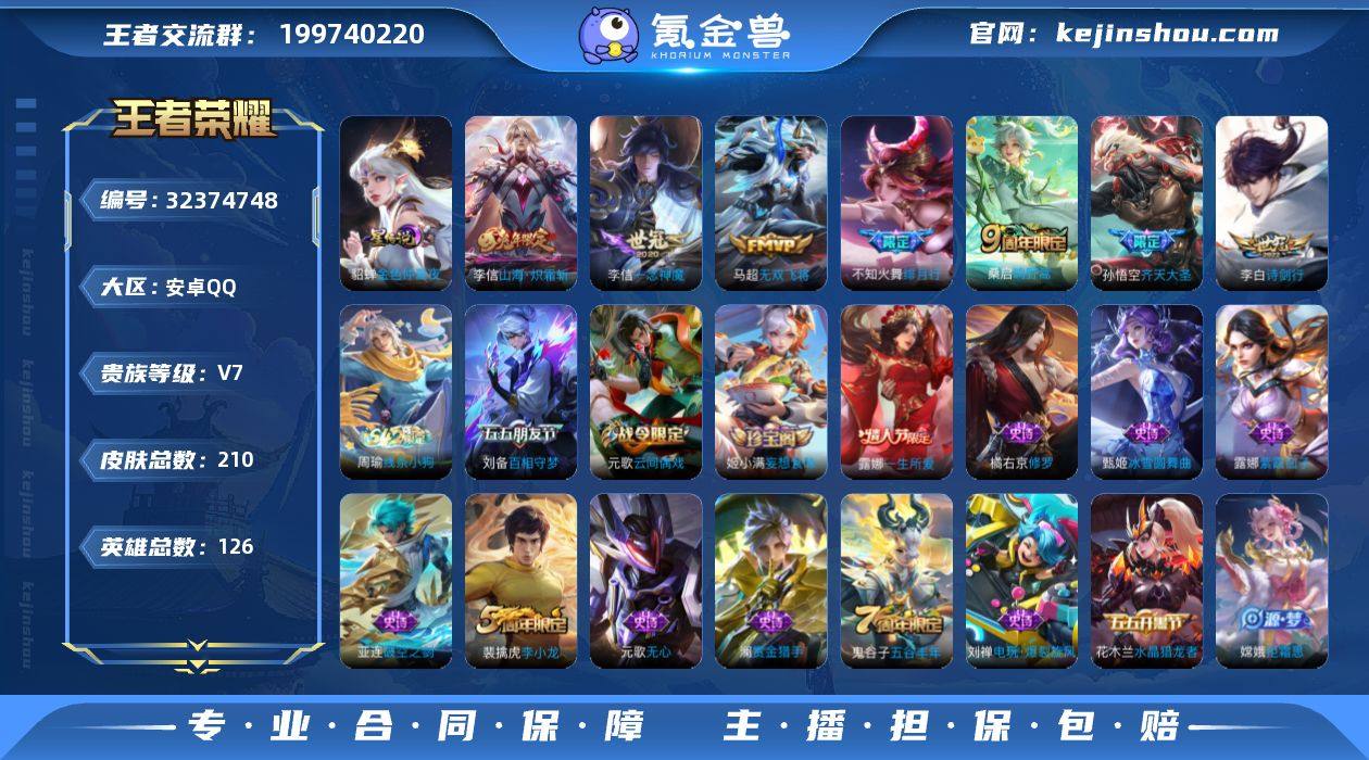 【XY648】贵族0/皮肤159/典藏1/传说2/史诗41/英雄118/无限飓风号/凤求凰/超时空战士-狄仁杰/阴阳师/皇家上将/白昼王子/蔷薇恋人/高山流水/夜都怪侠/猎兽之王/无心/朔风刀(s17)/烛龙(s10)/穷奇(s12)/暗影游猎/魔术师/万华元夜(s22)/星际陆战队-达摩/沙漠行僧(s26)/海滩派对/醍醐杖(s20)/演武夺筹(s23)/逐梦之影/金庭之子(s27)/青春决赛季/至尊宝/孙行者/御旌(s15)/云中旅人(s29)/驱傩正仪(s24)/黎明之约/繁星吟游/原初探秘者(s21)/五谷丰年/千军破阵(s25)/混沌棋(s18)/顽趣-梦奇/大漠名商(s28)/疑决卦(s19)/吟游魔法/李小龙/擒涛扼浪(s31)/御狮(s13)/御霄(s14)/胡桃异想国/御銮(s16)/西部大镖客-猪八戒/猪悟能/梁祝/拒霜思/探海日志(s32)/海盐诗旅(s30)/女武神/修罗/鹰眼统帅/猫狗日记-孙策/节奏热浪/星夜王子/功夫厨神/逐浪之夏/特工魅影/冰冠公主/心灵战警/暗隐猎兽者/乘风破浪/末日机甲-吕布/幽灵船长/圣诞狂欢/金属风暴/魅力维加斯/水果甜心/鬼剑武藏/圣诞恋歌/劲辣红锅/乐园追猎者/潮玩探月行/蔚蓝守将/契约魔法/唤灵魔甲/无双福将/紫罗兰之誓/铁甲之心/乓乓大师/缤纷绘卷/瓷语鉴心/次元傲视/秘密基地/无尽征程/特工战影/圆桌骑士(盾山)/次元突破/炽热元素使/鲨炮海盗猫/归虚梦演-蒙犽/野性能量/奇妙博物学/幽兰居士/科学大爆炸/守护之力/坚韧之力/敏锐之力/掌控之力/沉稳之力/制霸全明星/功夫老勺/幻想奇妙夜/霸王丸/海滩丽影/进击墨子号/龙腾万里/纽约教父/阿尔法小队/万象初新/花好人间/五福同心/兔女郎/拳王/死亡骑士/黄金武士/少女阿狸/未来纪元-宫本武藏/化身博士/星际陆战队(程咬金)/红桃皇后/白执事/大发明家/爱心护理/哥特玫瑰/街头霸王/教廷特使/赤焰之缨/启蛰/孤猎/创世神祝/灼热之刃/花见巫女/魇语军师/海之征途/午夜歌剧院/霓裳曲/花间舞/尼罗河女神/美梦成真/绝影神枪/龙域领主/阿摩司公爵/...
