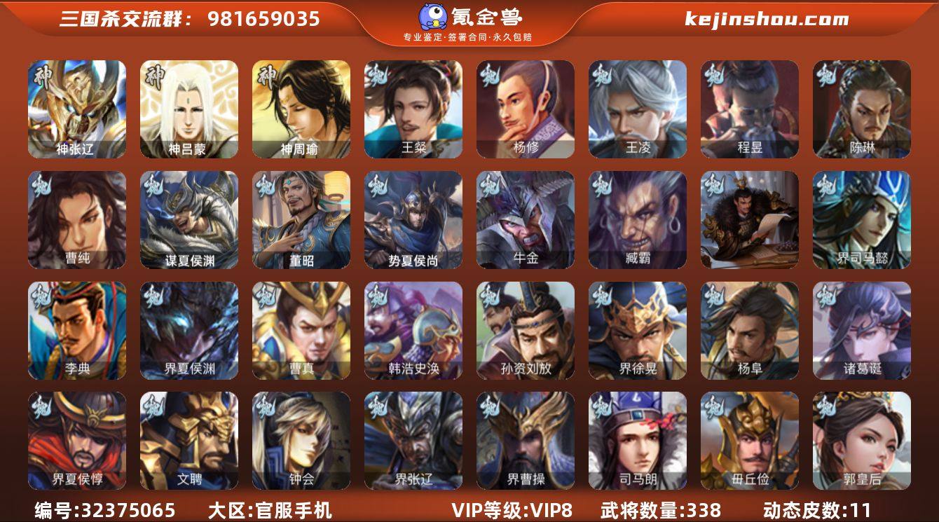 官阶:骠骑将军;VIP等级:VIP8;史诗武将数量:25;动态皮肤数量:11;武将总数:338;史诗宝珠数量:0;将魂数量:1575;神将:1;魏国史诗武将:4;蜀国史诗武将:8;吴国史诗武将:2;群史诗武将:8