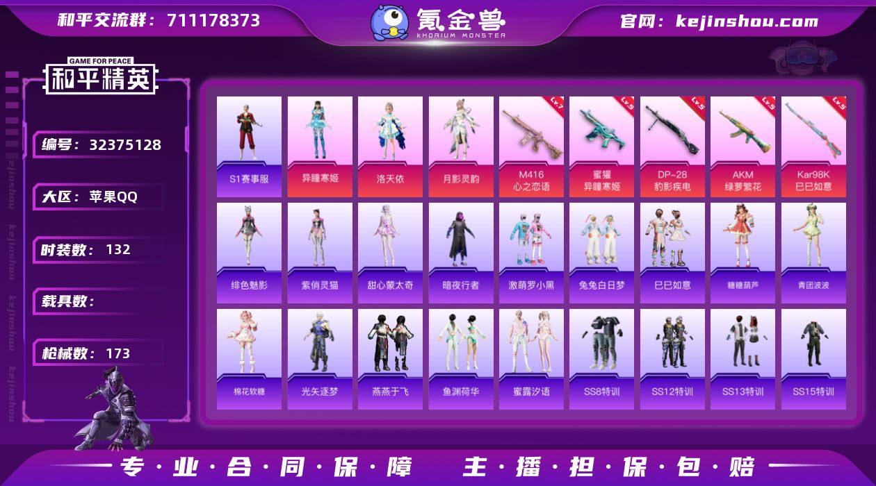 YZJ15859 可二次 苹果Q-3稀有4粉装6特效枪8热门132套装173枪皮 51895热力值 老玩家专属号 S1全套 满级M4心之恋语 洛天依 月影灵韵 异瞳寒姬 兔兔白日梦 激萌罗小黑 5级蜜獾异瞳寒姬 11印记 历史卓越王牌18星 【3稀有】 S1赛事 S1赛事裤 S1赛事外套 【4粉装】 洛天依 异瞳寒姬 月影灵韵 罪夜之冕 【6特效枪】 M416-心之恋语 (7级) AKS-74U-森灵之息 (5级) AKM-绿萝繁花 (5级) Kar98K-巳巳如意 (5级) DP-28-豹影疾电 (5级) 蜜獾-异瞳寒姬 (5级) AKS-74U-森灵之息 (5级) 【8热门】 雪山精英 兔兔白日梦 激萌罗小黑 暗夜行者 团圆交子 韶华初心 破蛋小黄鸡 极速红龙 【1飞行器】 萌物绒绒飞行器 【1背包】 深海小丑鱼背包 营地ID:982257352
