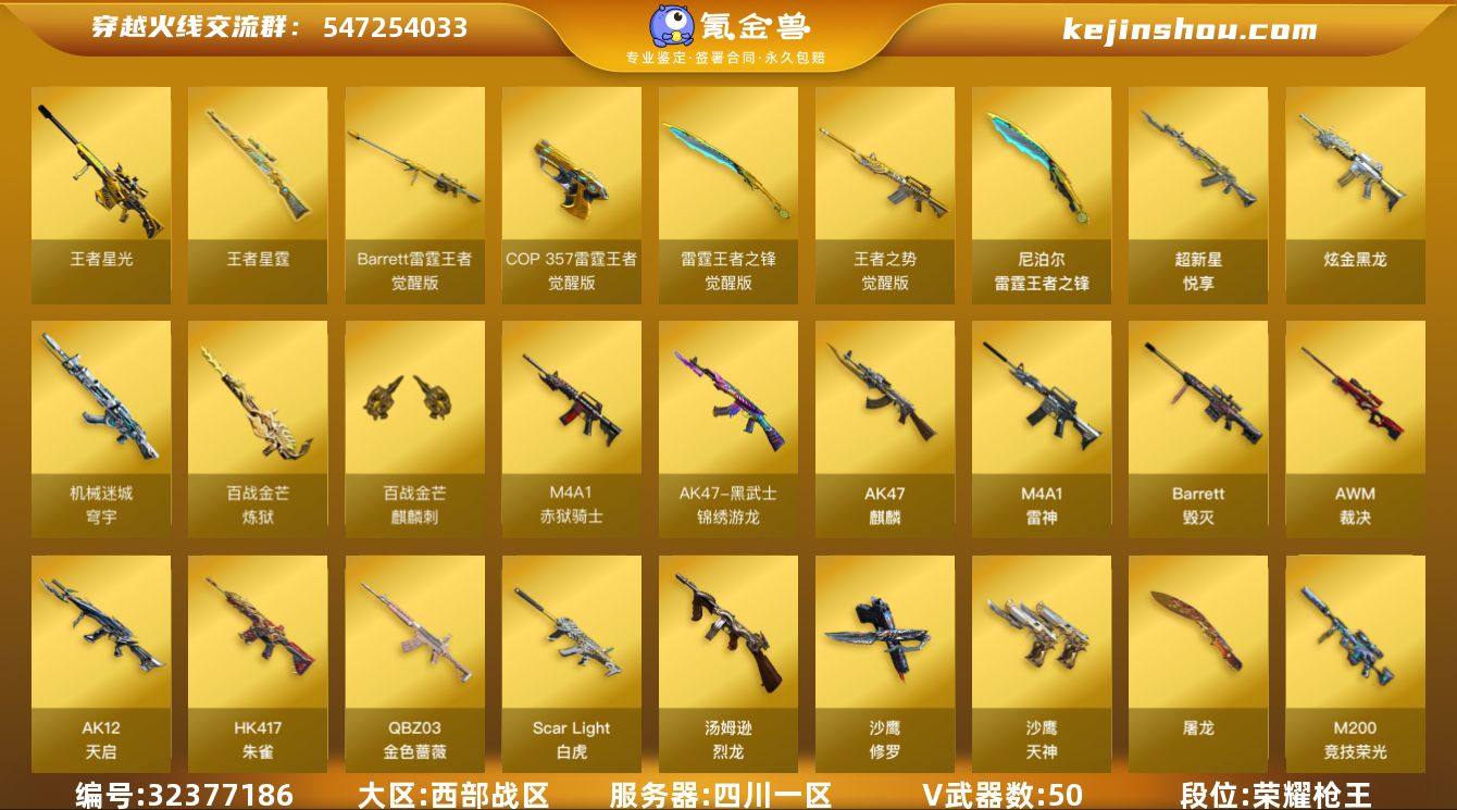 【ky6029】四川一区-72V-24王者武器数-1炫金武器数 【传说角色】:传说星骇 【热门武器】:QBZ03-金色蔷薇,Scar Light-白虎,HK417-朱雀,M200-竞技荣光,汤姆逊-烈龙*2,沙鹰-修罗*2 【王者炫金武器】:超新星-悦享,王者星霆,王者星光,炽渊之怒,雷霆王者之锋*2,炫金黑龙 【音效卡】:屠龙-云海游龙音效卡,M4A1-雷神音效卡,QBZ03-金色蔷薇音效卡,AWM-裁决音效卡,Scar Light-白虎音效卡 【皮肤】:幻神-荣耀世冠EP 皮肤,白虎-百战金芒 皮肤,金色蔷薇-破浪逐光 皮肤,QBZ03-荣耀世冠EP 皮肤,裁决-流光秘银,裁决-叶芒苍灵 皮肤,雷神-耀金皮肤,雷神-宇航兔皮肤,M4A1-再燃火线,毁灭-暗月,毁灭-SV-CFPLS16冠军,毁灭-虹光风暴 皮肤,黑骑士-地狱火,黑骑士-伏羲,修罗-冠军之魂,屠龙-星火燎原,屠龙-破浪逐光 皮肤,轻型军用手斧-再燃火线 【角色】:电竞教官-云悠悠,晴雅,迅捷虹喵,零·纪元,王者炫,修道士,葵-阿尔法武装,暗夜-X,北极狐-X,芳心审判者,飞虎队-X,风暴女,兰-新年限定,灵狐者-X,潘多拉-X,潘多拉-甜心教官,幽 【人偶武器】:星神-炽天使,异变清道夫-蛇影双骄,迷你律动酷熊,夺魂,迷你艾比,迷你超能女侍 【暴走生化】:超级对讲机...