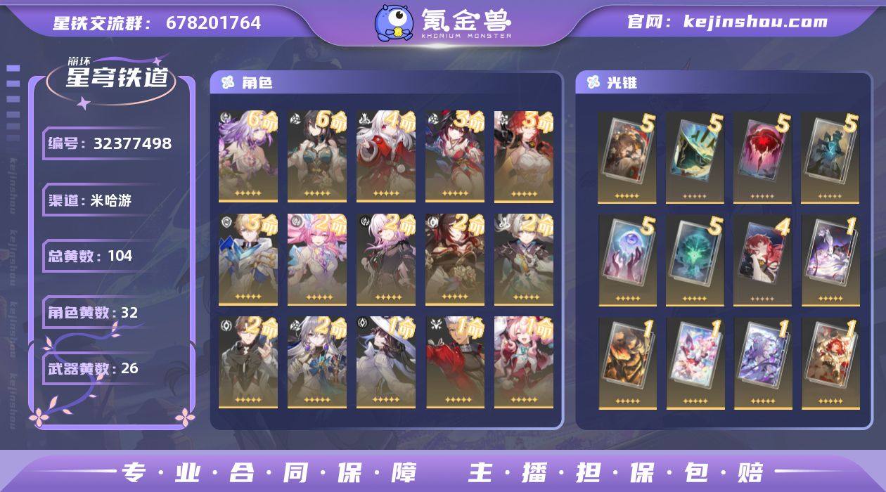 崩铁开服成品爽号(阮梅厨) 配置:61蝶21月20昔11风(18金记忆战舰) 21萤20忘10花(9金击破队) 11红a31花11缇宝11鸟(10金巡猎队) 现绝境0t水平,号上110抽(4.0资源没肝) 混沌花样0t,虚构全程0t,末日常住7900 开服至今技术强度党,纪念册轻松拿