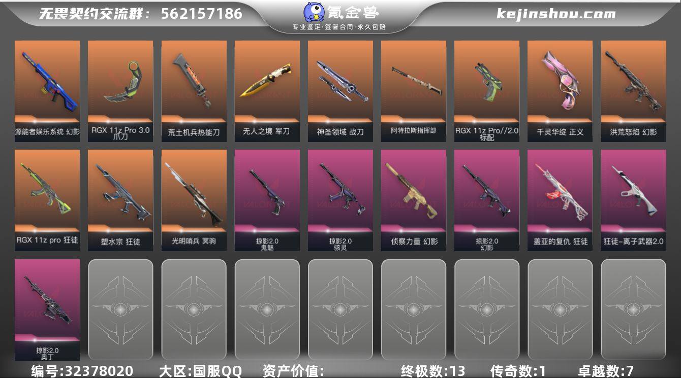【英雄】:幻棱,炼狱,维斯,暮蝶,钛狐,壹决,铁臂,捷风,雷兹,幽影,不死鸟,贤者,猎枭,蝰蛇,零,芮娜,奇乐,尚勃勒,霓虹,斯凯,夜露,星礈,海神,盖可,黑梦,钢锁 【近战武器】:近战武器-影钩,近战武器-RGX 11z Pro//2.0 蝴蝶刀,近战武器-离子武器//2.0 爪刀,近战武器-诡秘蛇影 军刀,近战武器-神圣领域 战刀,近战武器-日耀风暴 遗器,近战武器-阿特拉斯指挥部 甩棍 【狂徒】:狂徒-洪荒怒焰,狂徒-混沌序曲,狂徒-离子武器//2.0,狂徒-诡秘蛇影 【幻影】:幻影-天界神兵//2.0,幻影-侦察力量,幻影-神圣领域,幻影-末日之翼 【戍卫】:戍卫-破败军械,戍卫-月球哨兵,戍卫-折光棱晶 【獠犬】:獠犬-归零者,獠犬-神圣领域 【冥驹】:冥驹-堕天遗武,冥驹-星云暗涌 【飞将】:飞将-塑水宗,飞将-末日之翼 【莽侠】:莽侠-诡秘蛇影,莽侠-月球哨兵 【战神】:战神-神圣领域 【奥丁】:奥丁-末日之翼 【判官】:判官-千灵华绽,判官-诡秘蛇影 【雄鹿】:雄鹿-紫阙金琅//2.0,雄鹿-月球哨兵 【骇灵】:骇灵-奇点,骇灵-星云暗涌 【蜂刺】:蜂刺-星云暗涌,蜂刺-折光棱晶 【标配】:标配-折光棱晶 【VCT手枪】:标配-VCT25 x TS 【正义】:正义-奇点,正义-西部未来,正义-月球哨兵 【鬼魅】:鬼魅-耀鳞威龙,鬼魅-诡秘蛇影,鬼魅-星云暗涌 【狂怒】:狂怒-神圣领域 【短炮】:短炮-末日之翼 【卡面】:热舞环节 卡面,无畏契约GO!第一卷:芮娜 卡面,无畏契约GO!第一卷:零 卡面,《双城之战》金克丝 卡面,无畏契约GO!第一卷:贤者 卡面,钢锁vs盖可 卡面,代号红色 卡面,新兵报到 卡面,V契约 卡面,无畏契约 卡面 【喷漆】:买装还是存钱 喷漆,关门放狗 喷漆,放下武器 喷漆,胜利属于无畏契约 喷漆,GLHF 喷漆,无畏契约 喷漆 【挂饰】:无畏契约GO!第一卷 芮娜 挂饰,无畏契约GO!第...