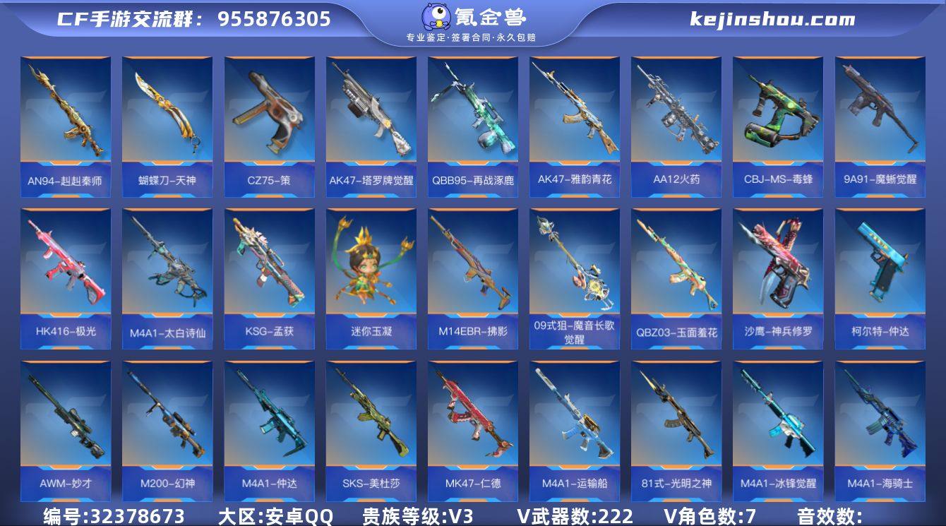 【特价出售/店主推荐】枪王-7英雄角色数-181英雄武器数 【热门武器】:81式-光明之神,81式-阿波罗 【角色】:樱,瞳,关小雨*2,职场灵狐-赛事经理,零-水下丽影,炽天使-X 【英雄武器】:AK47-无影,AK47-火麒麟*3,AK47-心动次元,AK47-血武士,AK47-华夏传说,AK47-木兰,AK47-轮回,AK47-塔罗牌觉醒,M4A1-雷神*2,M4A1-黑骑士,M4A1-死神*2,M4A1-海骑士,M4A1-堕天神,M4A1-心动次元觉醒,M4A1-运输船,M4A1-太白诗仙,SCAR Light-白虎,SCAR-探星者,AN94-超新星,AN94-四凶觉醒,AN94-赳赳秦师,AUG-机械纪元,9A91-天神,M14EBR-拂影,M16-恶魔,QBZ03-金色蔷薇,QBZ03-死神,81式-光明之神,MK47-云舞,AWM-裁决,AWM-天使,巴雷特-毁灭*6,巴雷特-极光*2,巴雷特-极光-运动宝贝兰,巴雷特-冬灭觉醒,M200-心动次元觉醒,09式狙-天神,98K-黑骑士,98K-星神,TAC-晴舞,加特林-堡垒,QBB95-再战涿鹿,MK5-极光*2,汤姆逊-烈龙*2,寒霜烈龙,双持斯泰尔-天使,CBJ-MS-毒蜂,CZS2-心动次元觉醒,CZS2-血月,M12S-枪娘,PP19野牛-造纸术,打击者-天神,地狱火*2,地狱烈炎,AA12-火药觉醒,KSG-火力竞放,USP-神罚*2,USP-机械迷城*2,USP-太白诗仙,沙鹰-修罗*7,沙鹰-火麒麟,沙鹰-波塞冬,沙鹰-修罗-铁骑,气手枪-血月,沙鹰-神兵修罗,沙鹰-宇航兔兔,蟒蛇-火力竞放,改装GLOCK-木兰,改装GLOCK-黑龙,GLOCK18-宙斯,QSZ92-天使,柯尔特-仲达,柯尔特-伏刹山海觉醒,双持柯尔特-极光,CZ75-策,墨刃-幻神,蝴蝶刀-天神,龙啸,神罚战斧*4,镰刀-哈迪斯,手斧-机械迷城*2,秋逸,屠龙*3,血月,尼泊尔-雷霆,太白诗仙扇,麒麟刺,麒麟刺-堕天神,双脊龙趾,马来剑-毁灭*4,唐刀-大唐荣耀,擎天觉醒,斩魔刀,拳魔小巨兽,死神手雷,火麒麟手雷,高爆手雷-雷霆,雷神手雷,王者之影闪光弹,火麒麟闪光弹...