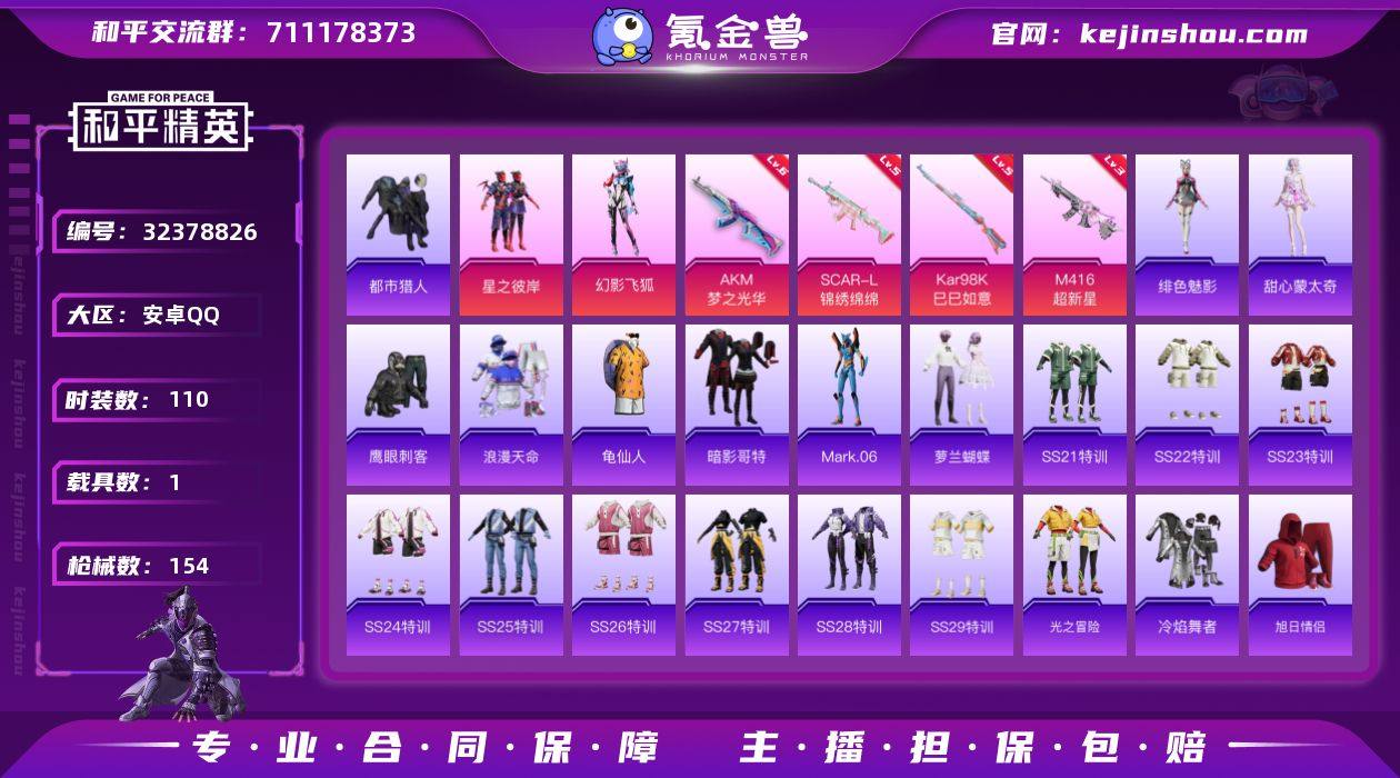 苹果 手Q-4粉装-9特效枪-1载具-3粉色飞行器-29463热力值-4王牌印记-64套装-88枪皮 【热门品类】:套装-龟仙人 【粉色套装】:角色-绝对恒星,角色-洛天依,角色-星渊 【粉色枪皮等级】:AKM-暮色玫影(三级),SCAR-L-锦绣绵绵(五级),UMP45-萌骑冒险(一级),AKS-74U-无垠阁(三级),Kar98K-巳巳如意(五级),Mk14-福马献瑞(五级),M249-绝对恒星(三级),DP-28-豹影疾电(四级),MG3-洛神天依(四级) 【粉色载具】:暮色幽蹄 【粉色枪皮】:AKM-暮色玫影,SCAR-L-锦绣绵绵,UMP45-萌骑冒险,AKS-74U-无垠阁,Kar98K-巳巳如意,Mk14-福马献瑞,M249-绝对恒星,DP-28-豹影疾电,MG3-洛神天依 【粉色飞行器】:绝对恒星飞行器,炫彩糖果飞行器,暮色之舞飞行器 【粉色降落伞】:绝对恒星降落伞,洛神天依降落伞,江南烟雨降落伞,精灵梦叶罗丽降落伞,荧海星豚降落伞,极意拳锋降落伞,炫彩糖果降落伞,暮色玫影降落伞 【稀有套装】:套装-龟仙人,角色-超感刻度,角色-甜心蒙太奇,套装-雪国风尚,套装-炫彩糖果,套装-马上来财,套装-雏菊兔兔,套装-萝兰蝴蝶,角色-蜜桃派对,套装-画境星梦,套装-琴音绮想,套装-雨过天青,套装-红釉青花,角色-霜纹水星 【稀有枪皮】:AUG-冰晶雪宝,AKM-缤纷海域,SCAR-L-炫彩节奏,M416-神秘黑猫,GROZA-暮色玫影,AUG-天降萌叽,AUG-绝对恒星,QBZ-彩虹符号,QBZ-洛神天依,M762-彩虹符号,Mk47-洛神天依,AC-VAL-天降萌叽,ACE32-画境星梦,Vector-焰鹰斗篷,汤姆逊-天降萌叽,汤姆逊-樱桃泡泡,MP5K-画境星梦,Kar98K-洛神天依,AWM-焰鹰斗篷,AWM-暮色玫影,SKS-炫彩节奏,M1加兰德-画境星梦,S1897-神秘黑猫,DBS-焰鹰斗篷,AA12-G-画境星梦,DP-28-焰鹰斗篷,MG3-幻世战舞者,突击盾牌-绝对恒星,撬棍-暮色玫影,平底锅-画境星梦 【其他套装】:套装-SS27特训,套装-SS28特训...