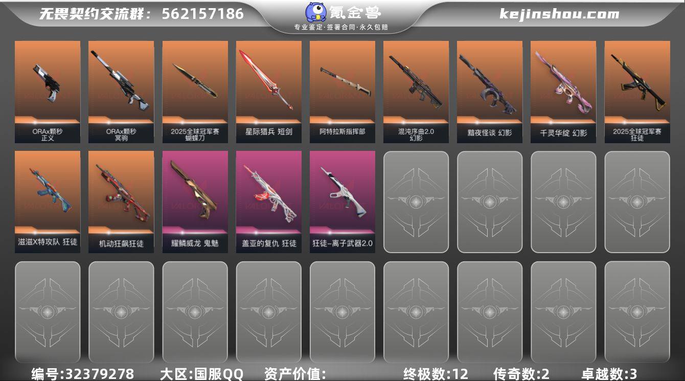【qyz8976】精品25套 千灵扇子 qyz8976 【近战武器】:近战武器-2025全球冠军赛 蝴蝶刀,近战武器-流风回雪,近战武器-阿特拉斯指挥部 甩棍,近战武器-星际猎兵 短剑 【狂徒】:狂徒-2025全球冠军赛,狂徒-机动狂飙,狂徒-滋滋X特攻队,狂徒-盖亚的复仇,狂徒-离子武器//2.0 【幻影】:幻影-黯夜怪谈,幻影-千灵华绽,幻影-混沌序曲//2.0 【冥驹】:冥驹-ORA x 颗秒 【正义】:正义-ORA x 颗秒 【鬼魅】:鬼魅-耀鳞威龙 【卡面】:无畏契约:暮蝶 卡面,正义的化身 卡面,战术熊与伙伴们 卡面,打造专属狂徒 卡面,无畏契约GO!第一卷:芮娜 卡面,无畏契约GO!第一卷:零 卡面,暗枪 卡面,代号红色 卡面,新兵报到 卡面,V契约 卡面,无畏契约 卡面 【喷漆】:伤心心 喷漆,买装还是存钱 喷漆,红鳞 喷漆,松叶 喷漆,放下武器 喷漆,胜利属于无畏契约 喷漆,GLHF 喷漆,无畏契约 喷漆 【挂饰】:无畏契约GO!第一卷 芮娜 挂饰,无畏契约GO!第一卷 零 挂饰,天外飞客 挂饰,无畏契约 纪念币 挂饰