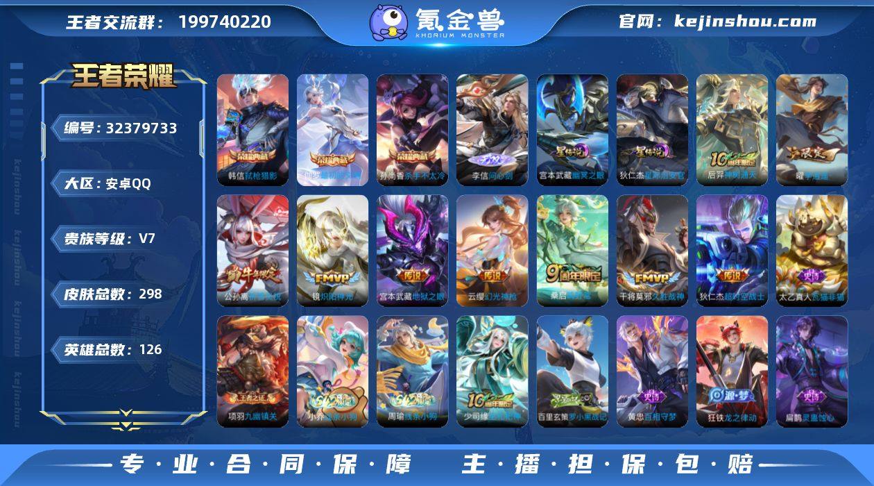 AHC30921,,,安卓Q-V7-最强王者段位-126英雄-298皮肤-3典藏皮肤-1无双-9传说-98史诗 【英雄全皮】:孙权全皮,猪八戒全皮,敖隐全皮,影全皮 【荣耀典藏】:孙尚香杀手不太冷,韩信弑枪猎影,伽罗最初的交响 【无双皮肤】:李信问心剑 【传说皮肤】:后羿神树通天,云缨幻光神枪,桑启鸣野蒿,曜李逍遥 ,公孙离祈雪灵祝,镜炽阳神光,干将莫邪久胜战神,宫本武藏地狱之眼,狄仁杰超时空战士 【限定皮肤】:姜子牙天穹之誓,狄仁杰阴阳师,赵云皇家上将,墨子神迹守卫,嬴政白昼王子,鲁班七号狮舞东方,庄周高山流水,高渐离玩趣恶龙,钟无艳王者之锤,芈月重明,芈月白晶晶,吕布猎兽之王,周瑜赤莲之焰,元歌无心,夏侯惇朔风刀,甄姬幽恒,甄姬游园惊梦,曹操天狼征服者,典韦穷奇,马可波罗暗影游猎,狄仁杰魔术师,狄仁杰万华元夜,达摩星际陆战队,达摩沙漠行僧,项羽海滩派对,老夫子醍醐杖,老夫子航海奇遇记,程咬金演武夺筹,露娜一生所爱,王昭君午后时光,兰陵王驯魔猎人,兰陵王金庭之子,孙悟空至尊宝,孙悟空孙行者,牛魔御旌,后羿如梦令,后羿圣弓游侠,李元芳银河之约,李元芳云中旅人,钟馗神迹守卫,钟馗驱傩正仪,干将莫邪冰霜恋舞曲,干将莫邪真爱魔...