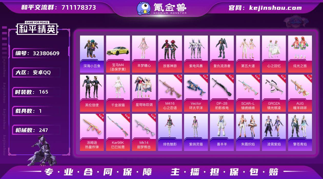 M103157【极品连体号 和平1载具5粉装5特效枪 梦幻火箭 宝贝奶油派 2B战斗服款 天使彩虹糖 香水柠檬 王者124英雄 312皮肤 V9 2典藏 25传说】安卓Q-1载具5粉装5特效枪5热门81套装112枪皮 35481热力值 5印记 历史超级王牌4星 【1载具】 玛莎拉蒂Q蓝色 【5粉装】 梦幻火箭 宝贝奶油派 天使彩虹糖 香水柠檬 绚金战神 【5特效枪】 SCAR-L-锦绣绵绵 (4级) AKM-绿萝繁花 (5级) Kar98K-巳巳如意 (5级) DP-28-豹影疾电 (4级) GROZA-香水柠檬 (6级) 【5热门】 2B战斗服款 冰爽海盐 破蛋小黄鸡 极速红龙 M24-香水柠檬 【1飞行器】 梦幻火箭飞行器 【1头盔】 梦幻火箭头盔 AKM-冰凉西瓜AKM-破晓战魂AKM-霓虹街区AKM-夜灯AKM-彩虹符号AKM-虎虎生威AKM-龙的传人M16A4-蓝色火焰M16A4-红色方程式M16A4-幻世战舞者SCAR-L-红色方程式SCAR-L-炫彩节奏SCAR-L-玉兔迎春SCAR-L-星途旅人M416-蓝色火焰M416-红色方程式M416-糯团青竹GROZA-治愈之星GROZA-2B战斗服款AUG-耀粉歌者AUG-2P战斗服款QBZ-飞驰魅影M762-天降萌叽Mk47-乌木金纹蜜獾-娇憨猪猪蜜獾-垂柳戏鸭蜜獾-天降萌叽UZI-红色方程式UZI-娇憨猪猪UZI-天降萌叽UMP45-蓝色火焰UMP45-生命誓言UMP45-海盐豹豹Vector-彩虹符号Vector-治愈之星Vector-香水柠檬汤姆逊-耀粉歌者汤姆逊-天降萌叽P90-飞驰魅影P90-巳巳如意Kar98K-红色方程式Kar98K-彩虹符号Kar98K-炫彩节奏Kar98K-飞驰魅影Kar98K-2B战斗服款Kar98K-顶峰精英M24-治愈之星M24-香水柠檬SKS-心之恋语VSS-香桃花海Mini14-梦幻火箭Mini14-耀粉歌者Mini14-香桃花海Mk14-治愈之星Mk14-乌木金纹Mk14-薄荷星砂SLR-娇憨猪猪莫辛纳甘-乌木金纹M417-惊鸿侠骨20-H