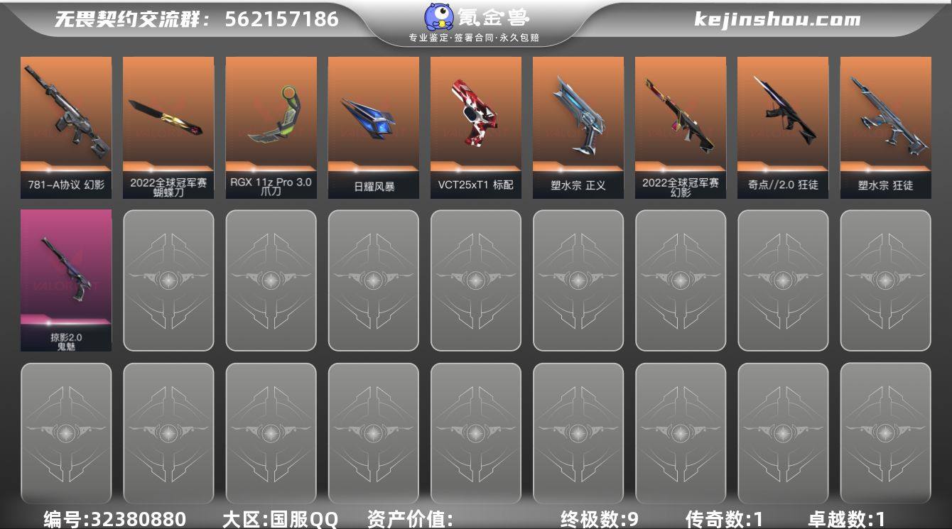 【英雄】:幻棱,炼狱,维斯,暮蝶,钛狐,壹决,铁臂,捷风,雷兹,幽影,不死鸟,贤者,猎枭,蝰蛇,零,芮娜,奇乐,尚勃勒,霓虹,斯凯,夜露,星礈,K/O,海神,盖可,黑梦,钢锁 【近战武器】:近战武器-镭切,近战武器-荒土机兵 热能刀,近战武器-诡秘蛇影 军刀,近战武器-神圣领域 战刀,近战武器-日耀风暴 遗器,近战武器-阿特拉斯指挥部 甩棍,近战武器-星际猎兵 短剑 【狂徒】:狂徒-2025全球冠军赛,狂徒-奇点//2.0,狂徒-双城之战,狂徒-塑水宗,狂徒-创·纪元,狂徒-千灵华绽//2.0,狂徒-掠影,狂徒-盖亚的复仇,狂徒-紫阙金琅,狂徒-离子武器//2.0,狂徒-荒土机兵,狂徒-诡秘蛇影 【幻影】:幻影-侦察力量,幻影-海洋之星//2.0,幻影-掠影//2.0,幻影-神圣领域,幻影-纳米打击,幻影-末日之翼 【戍卫】:戍卫-破败军械,戍卫-掠影,戍卫-逆冲蛮牛,戍卫-月球哨兵,戍卫-折光棱晶 【獠犬】:獠犬-神圣领域,獠犬-逆冲蛮牛 【冥驹】:冥驹-堕天遗武,冥驹-起源,冥驹-荒土机兵,冥驹-星云暗涌 【飞将】:飞将-末日之翼 【莽侠】:莽侠-神中神罚,莽侠-诡秘蛇影,莽侠-月球哨兵 【战神】:战神-神圣领域,战神-浮光跃金 【奥丁】:奥丁-纳米打击,奥丁-末日之翼 【判官】:判官-诡秘蛇影,判官-纳米打击x 【雄鹿】:雄鹿-逆冲蛮牛,雄鹿-月球哨兵 【骇灵】:骇灵-荒土机兵,骇灵-无限竞技,骇灵-星云暗涌 【蜂刺】:蜂刺-天界神兵,蜂刺-星云暗涌,蜂刺-折光棱晶 【标配】:标配-荒土机兵,标配-浮光跃金,标配-折光棱晶 【VCT手枪】:标配-VCT25 x EDG 【正义】:正义-奇点,正义-塑水宗,正义-西部未来,正义-纳米打击,正义-游戏结束,正义-月球哨兵 【鬼魅】:鬼魅-诡秘蛇影,鬼魅-模拟赫兹,鬼魅-扑棱扑棱,鬼魅-星云暗涌 【狂怒】:狂怒-神圣领域,狂怒-逆冲蛮牛 【短炮】:短炮-末日之翼 【卡面...