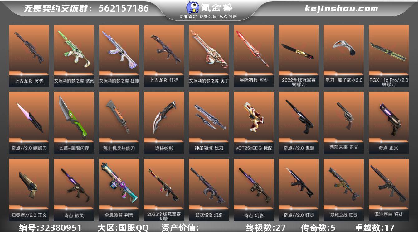 w4507 【精品号】星际短剑 归零2.0正义 22冠军套 诡秘军刀 离子2.0套 神圣战刀 猫猫狂徒 盖亚狂徒 显卡蝴蝶刀 洪荒狂徒 猫猫骇灵 混沌狂徒 上古冥驹 上古狂徒 猫猫奥丁 全息判官 盖亚飞将 热能刀 奇点战神 班若2.0套 双城狂徒 定海神珍 紫金狂徒 堕天冥驹 天界蜂刺 掠影狂徒 超限匕首 奇点幻影 奇点骇灵 奇点2.0狂徒 奇点2.0蝴蝶刀 黯夜幻影 天界戍卫 紫金爪刀 库存: 77890剩余VP:194剩余R点:0 段位:铂金1