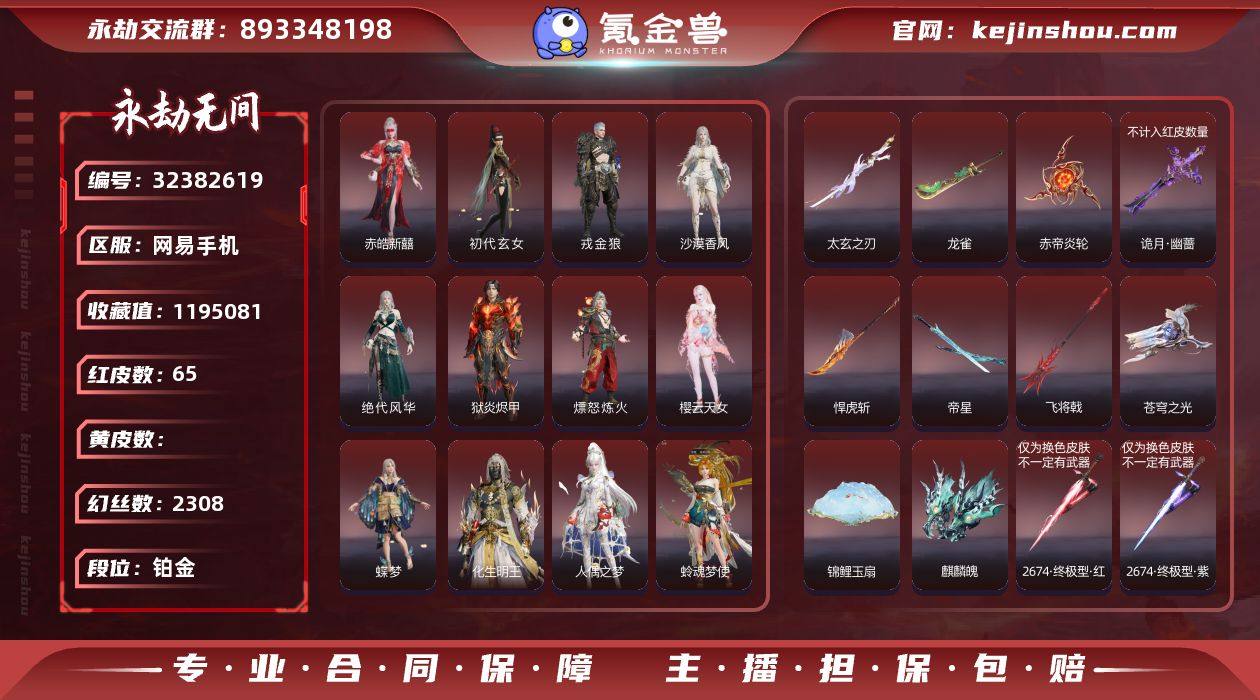 [17067050]WJ4911,网易手机,网易支付无法注销,2月28可换绑,三人段位蚀月1,辉光五百天人,2谪星,60红,1305,声望11,谪星2P,谪星沧澜绡,2孔,1黄,1蓝,等级649,收藏值995962,幻丝66906,金砖315,通行证Lv53,变身器,神君印,雪霜姿,勾玉,凶虎,赤莲,夜蔷薇,噬骨,霜翎,百战枷锁,好椰,绿野守护竹韵悠,2674初代机,神乌造像,龙门石龛造像,泡泡机,春木,御祥云,炎烈珠,魔杖,红色神品,墨离,凌霄之羽,香雪水兰,暮光胴丸,绝代风华,沙漠香风,监兵凶神,夜魅游莹,星辉魔纱,朱雀星衣,通天狐袄,化道者,执明神君,流金晓锦,守墨麒,逐光者,画中仙,化生明王,长天藏锦,戎金狼,赤皓新囍,初代玄女,狱炎烬甲,熛怒炼火,樱云天女,蝶梦,人偶之梦,蛉魂梦使,泣珠龙纱,海之奇,青龙将星,天罚,苍穹之光,毕方,赤帝炎轮,麒麟魄,帝星,比羿,龙雀,烈阳,狼主,悍虎斩,飞将戟,涯角,灵犀,如意金箍棒,天琼,锦鲤玉扇,逆晦朔,少阳剑,冰魄,狂龙,凤求凰,惊百里,太玄之刃,2674九阴,灵狐幻刃,2674终极型,2674终极型红,2674终极型紫,角色金色皮肤,黄庭道,梨园传奇柳生,封神录申公豹,武道无穷太极,司天命,幽篁山鬼,金羽客,金沙梦蜀,若谷,通玄,代号冰凌,禄运玉霄,龙吉公主,寒烟素,自动人形A2,仲夏霜华,求真,盛夏白阳,初夏绯莓,赤夏悠漾,半夏晚风,逐浪砂阳,极光夏夜,生死局,长夏清澜,精武魂,午后瑰夏,高校水着,至纯,自知,热海白珊,弄潮逐浪,过江龙,白鹿,烛泪,无韵自动人形纯白约定,天狐,辉,诡月链魂,胧夜狐影,天之刑,绝潮汐,破重云,匣中女郎,劫妹飞船,长歌诗韵五方狮,飞鼠,冰链,毒刺,活动中心手机绑定无法解绑,